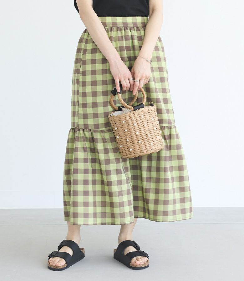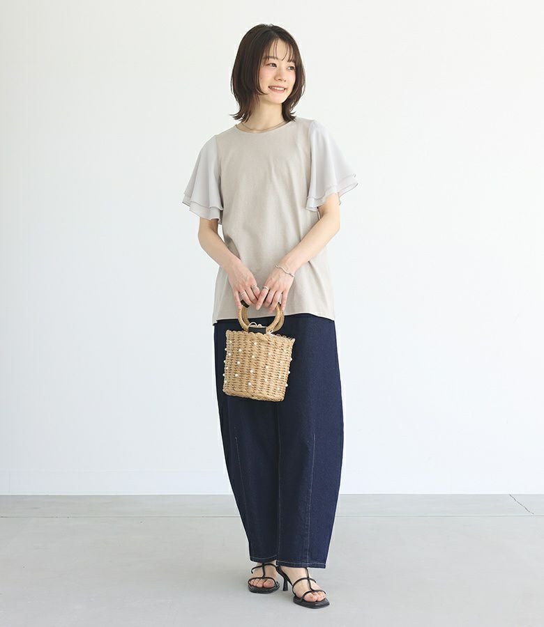 シンプルなアイテムに合わせるだけでアクセントになるバック。女性らしいスカートと合わせると、より印象的なスタイリングに。コーデや気分に合わせて持ち方を変えられる2wayデザインです。