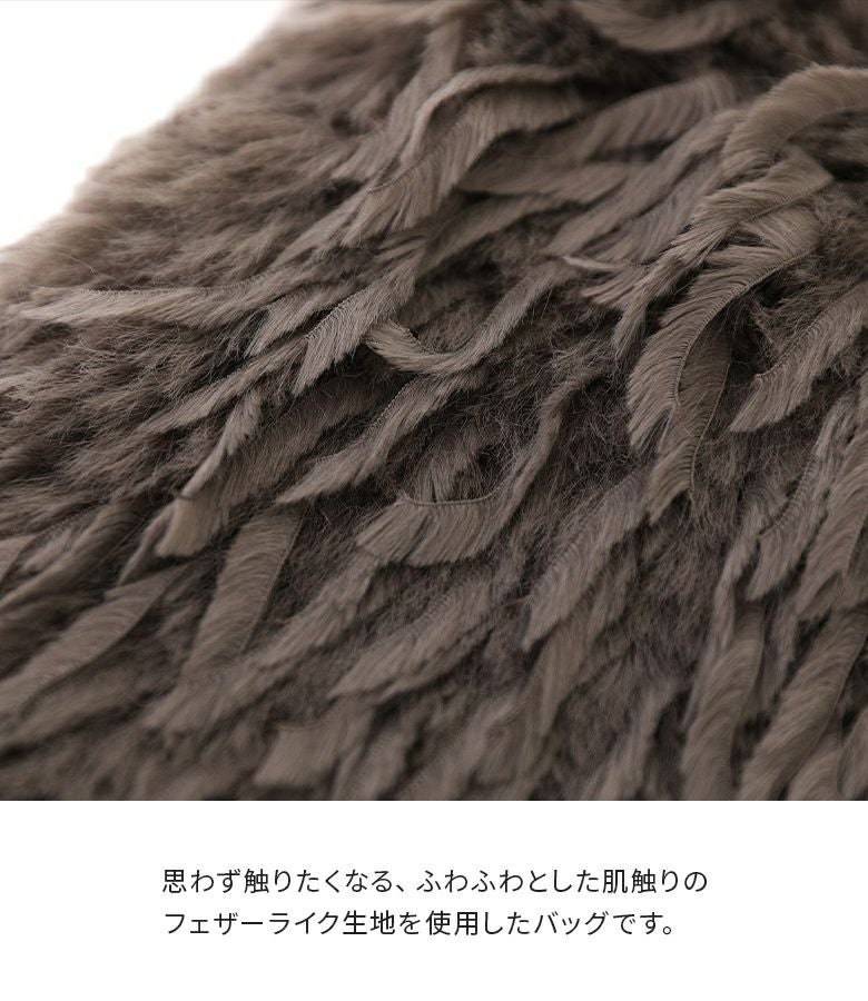 思わず触りたくなる、ふわふわフェザーライク生地を使用したバッグ。