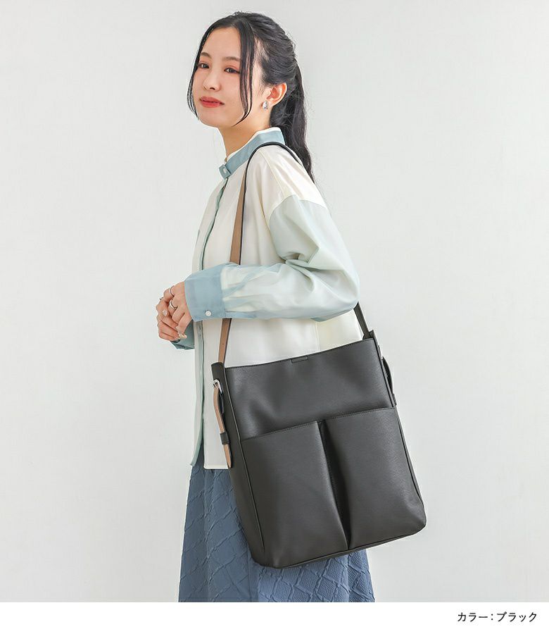 他の画像を見る 底にかけて広がるシルエットでA4サイズもすっぽり入るトートバッグ。 『n'OrLABELフェイクレザーハンドルトートバッグ』【メール便不可】【80】 ¥ 3,960 税込 4.00 (2)