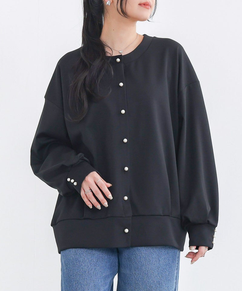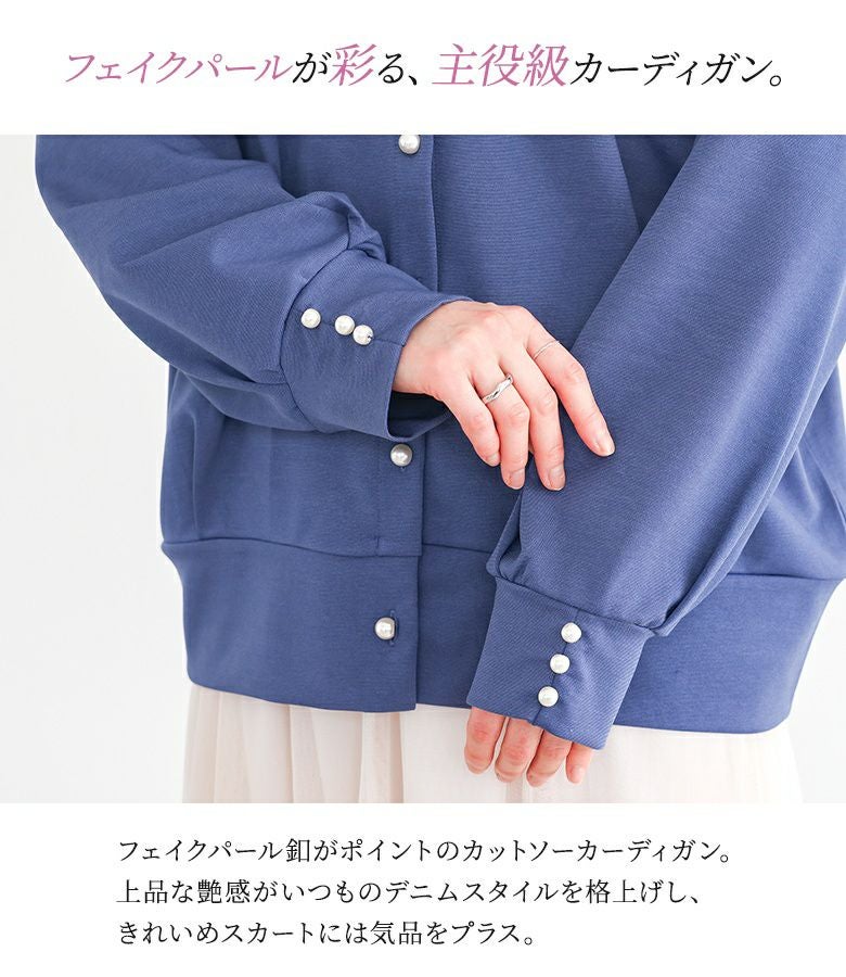 フェイクパールが彩る、主役級カットソーカーディガン。