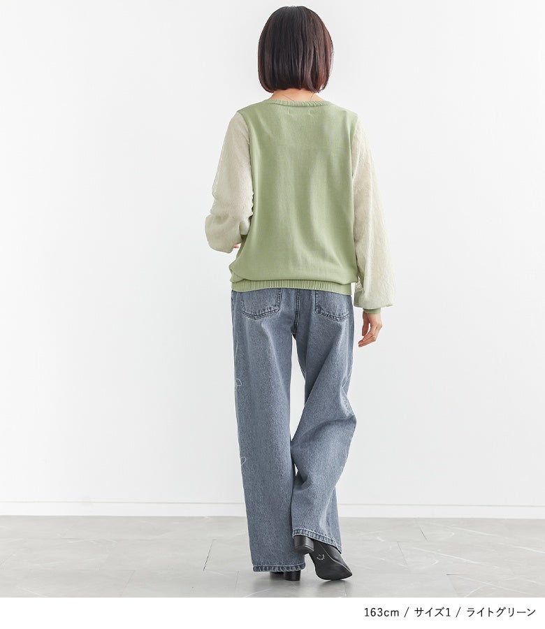 【普段着用】 Tops: L Bottoms:L | 【1】 袖丈:手の甲真ん中位 着丈:ヒップ真ん中位 腕周り:ややゆったり バスト:ややゆったり 全体:ややゆったり