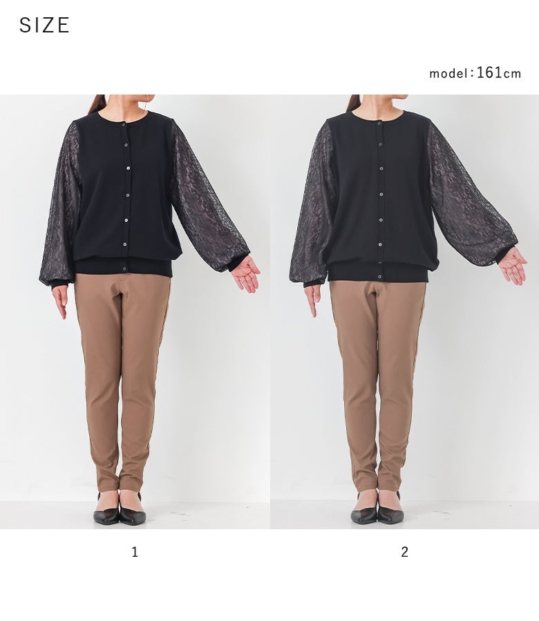 【普段着用】 Tops: M Bottoms:M/L | 【1】 袖丈:手首位 着丈:ヒップ真ん中位 腕周り:ややゆったり バスト:ややゆったり 全体:ややゆったり
