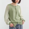 【普段着用】 Tops: M Bottoms: M/L | 【1】 袖丈:手首位 着丈:ヒップ真ん中より上位 腕周り:ややゆったり バスト:ゆったり 全体:ややゆったり