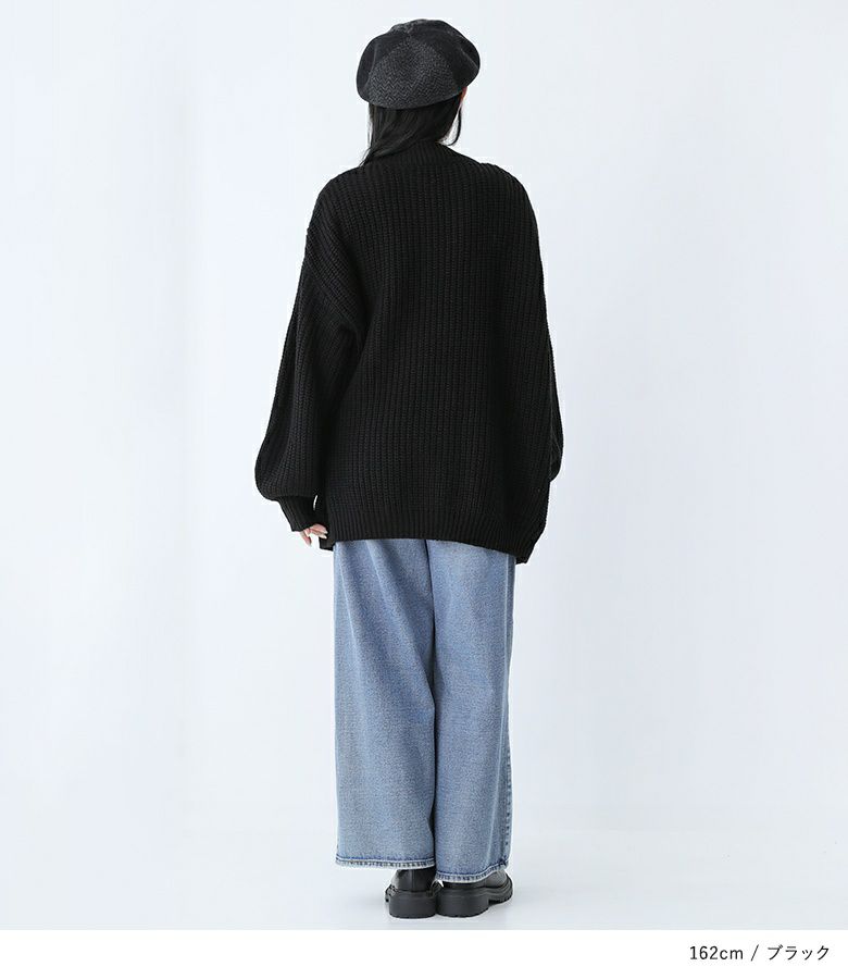 ガウンのようなカーディガン。ボタンがないのでさらっと羽織りやすいデザインです。ざっくりとしたニットだから羽織るだけで一気にシーズンムードを高めるアイテム。