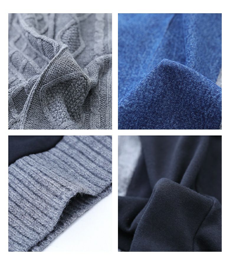 ニットには、ふっくらと厚みのあるアクリル素材を使用し、カットソー部分は肌触りの良いコットンをブレンドした生地を使用。デニム生地は使い込むほどに馴染む、丈夫な綿100%です。