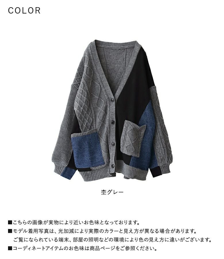 5. 『kOhAKU配色異素材切替ニットカーディガン』【メール便不可】【40】