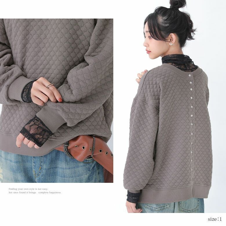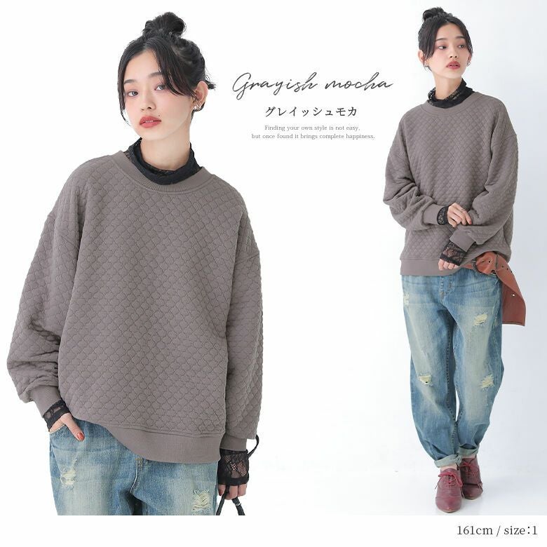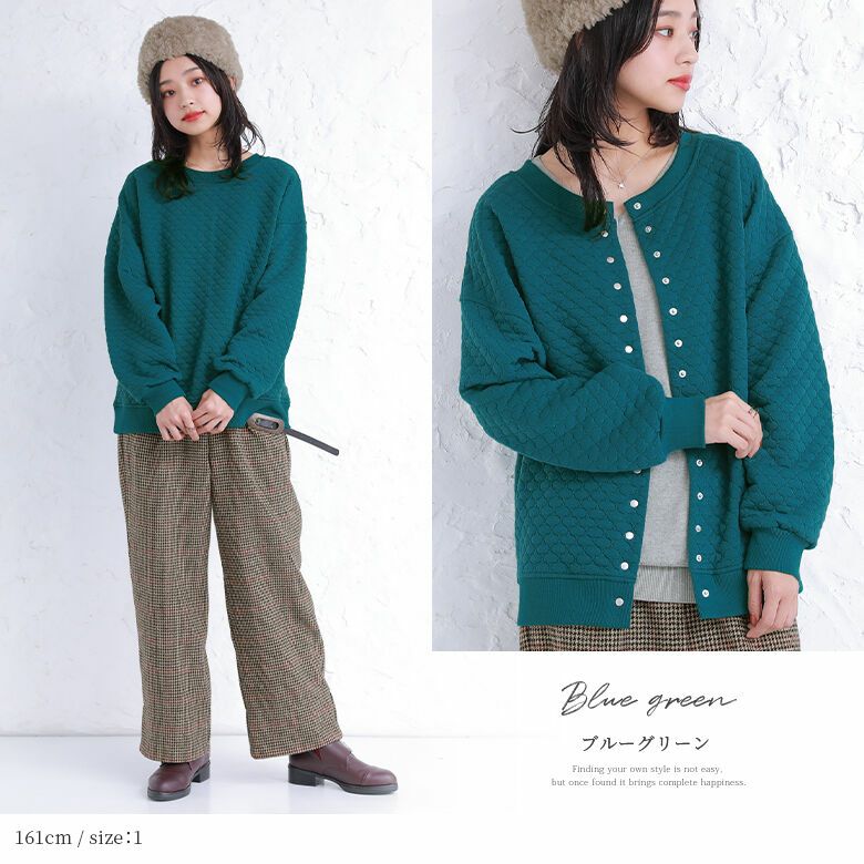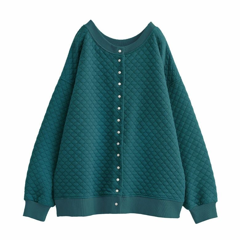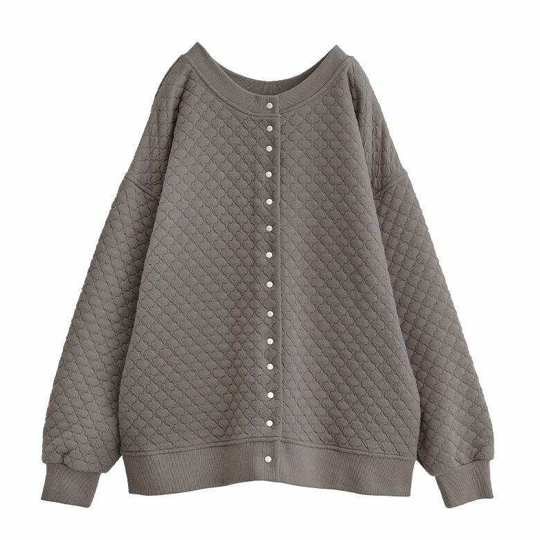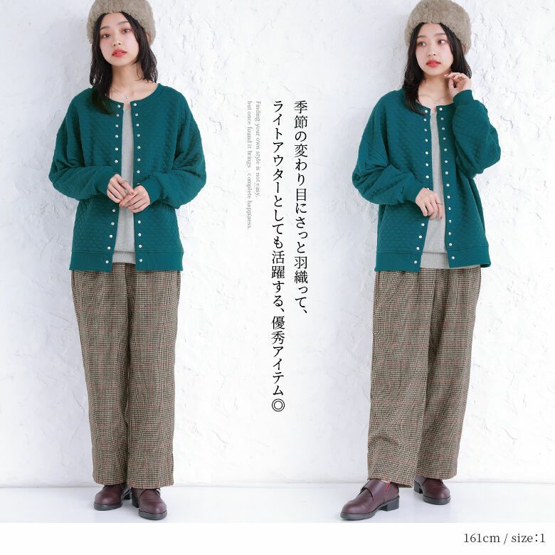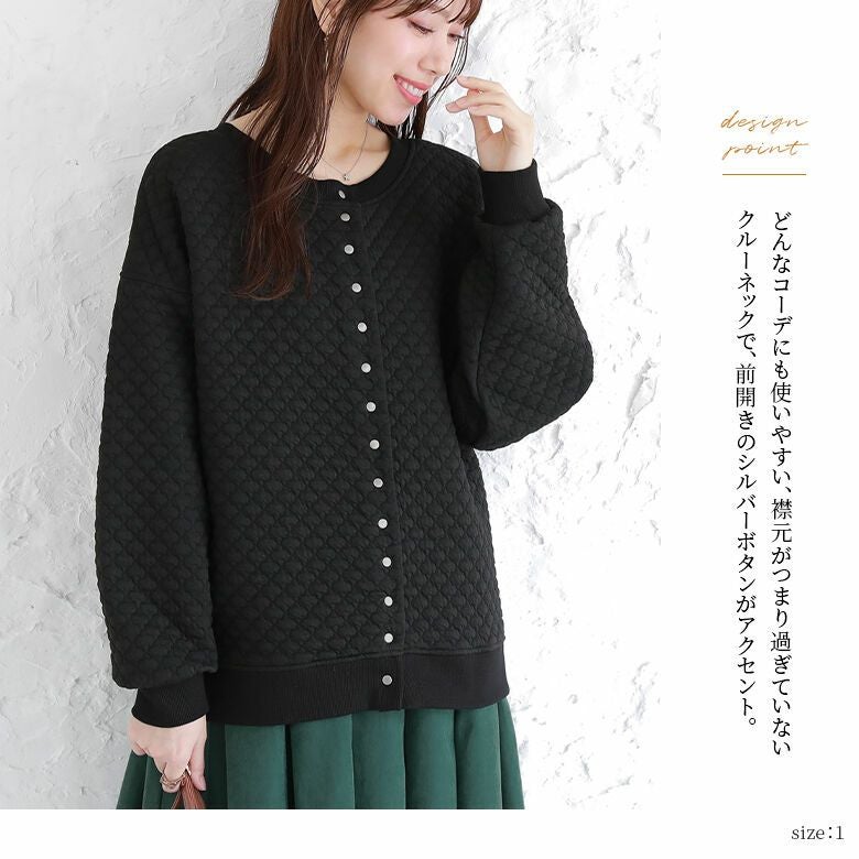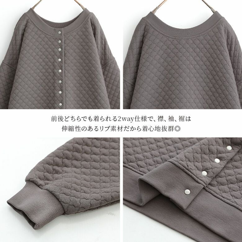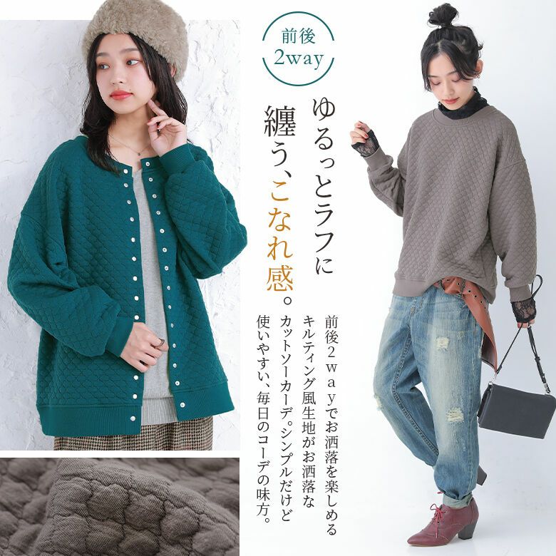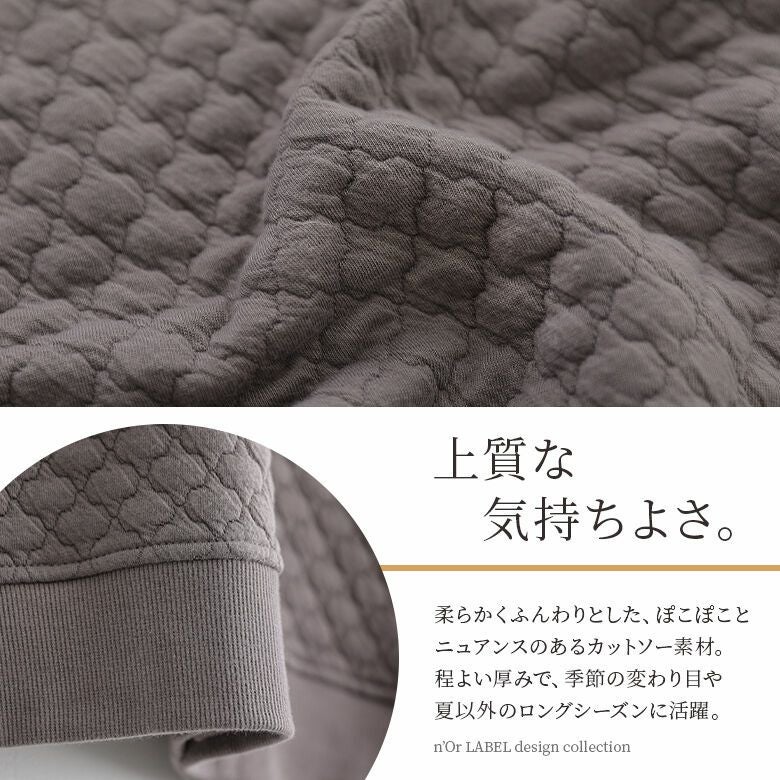 風合いのあるキルティング風素材は、ニュアンスたっぷりで、ふんわり柔らかく着心地抜群。季節の変わり目にさっと羽織って、ライトアウターとしても活躍する優秀アイテムです。