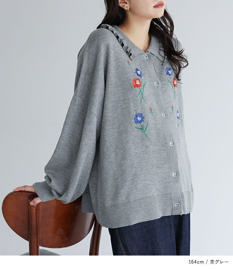 他の画像を見る オリジナルのフラワーモチーフを手刺繍で胸元にあしらったニットブルゾン。 【送料無料】『somari imaginationラインニットブルゾン』【メール便不可】【50】 ¥ 8,980 税込 (0)
