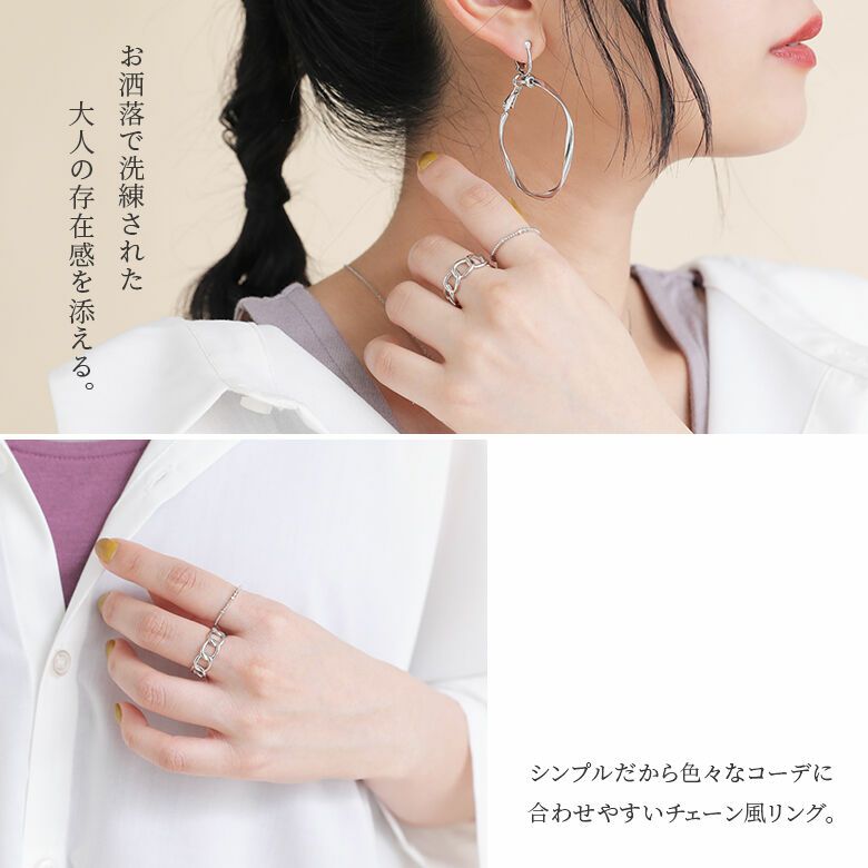 大人の手元に馴染むチェーン風リング。