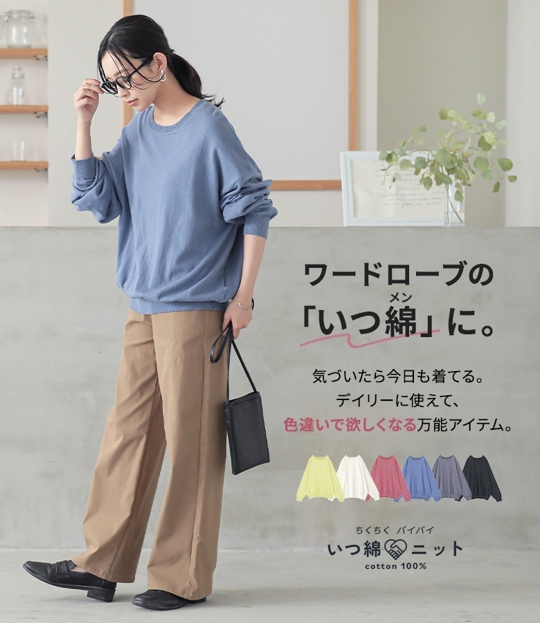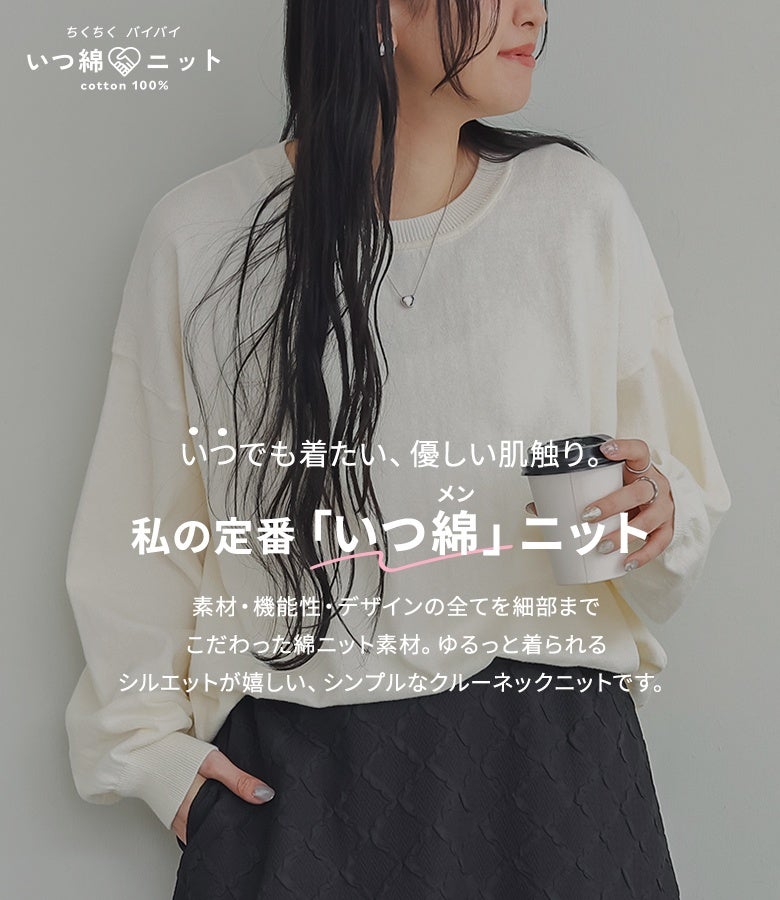 いつでも着たい、優しい肌触り。私の定番"いつ綿"ニットのクルーネックプルオーバー。