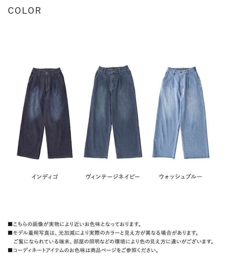 選べる着丈&M~3Lサイズ展開!すっきりとしたワイドシルエットの冷感デニム。