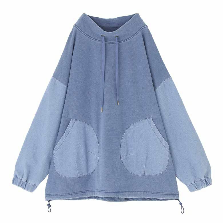 『インディゴ裏毛×デニム異素材プルオーバー』