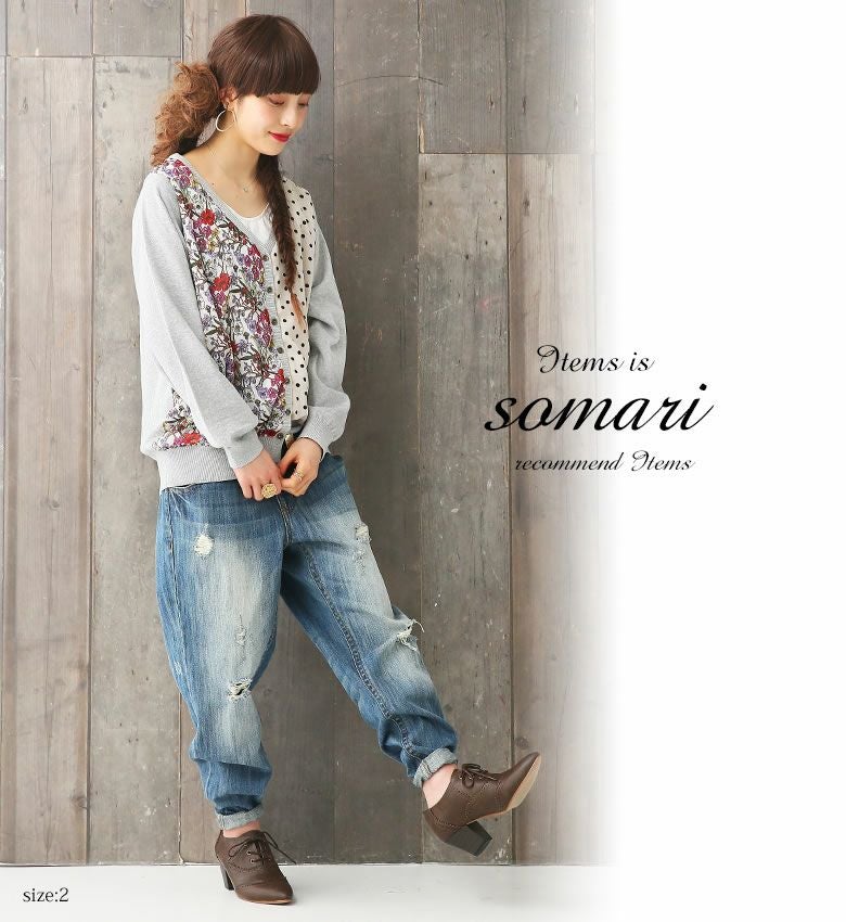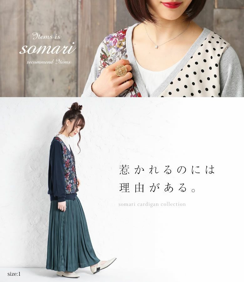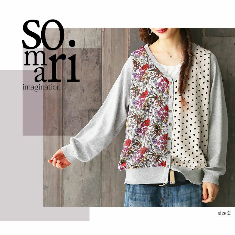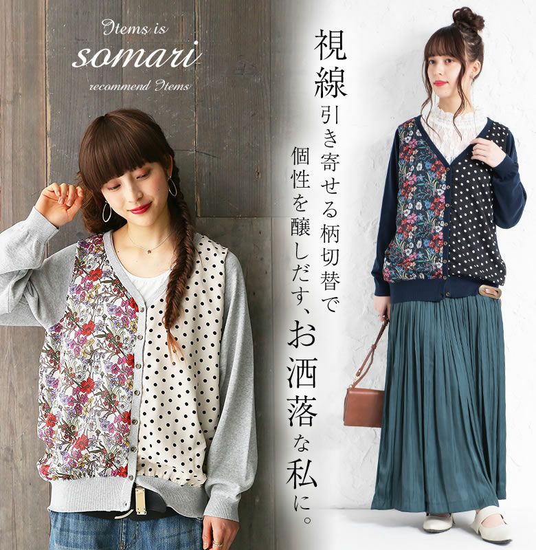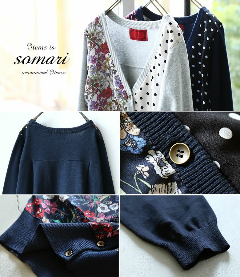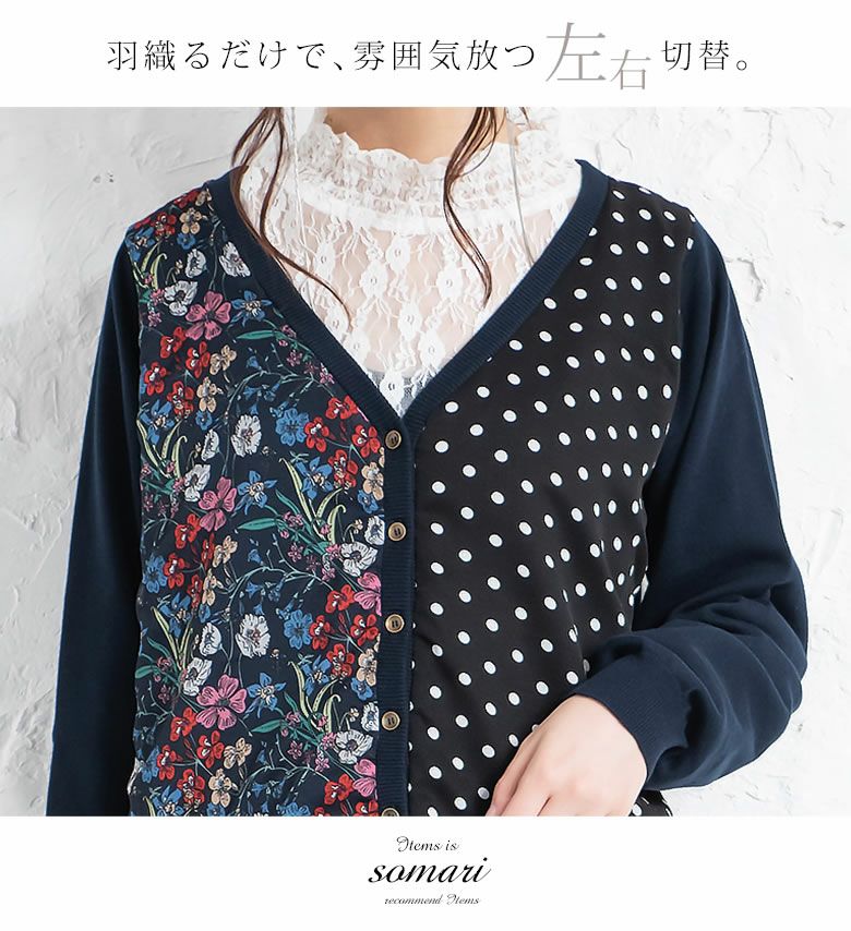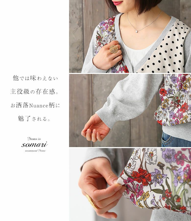 『somari imaginationフラワー×ドット切替ニットカーディガン』