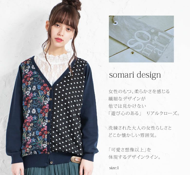 どこから見ても新鮮に魅せる≪somari imagination≫フラワー×ドット切替ニットカーディガンです。