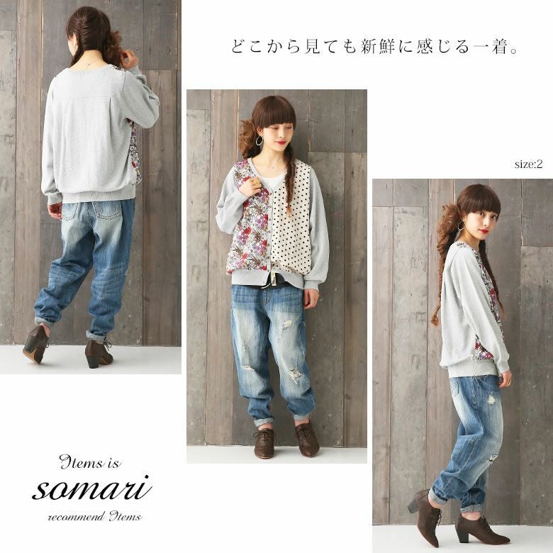 土台となるカーディガンに柄生地を縫い合わせているから、透け感も気にしなくて良いのが嬉しいポイントです。