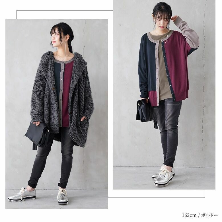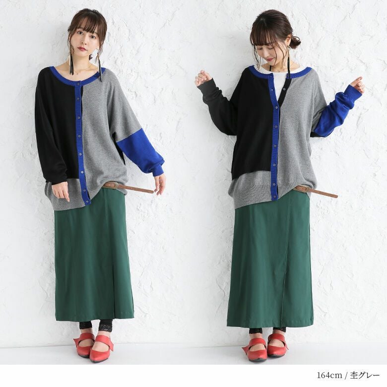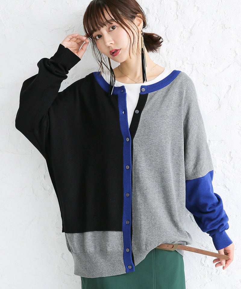 コーデを彩るアシメ配色ニットカーディガン♪