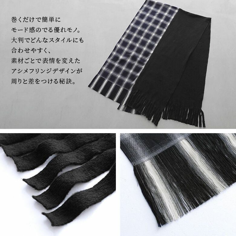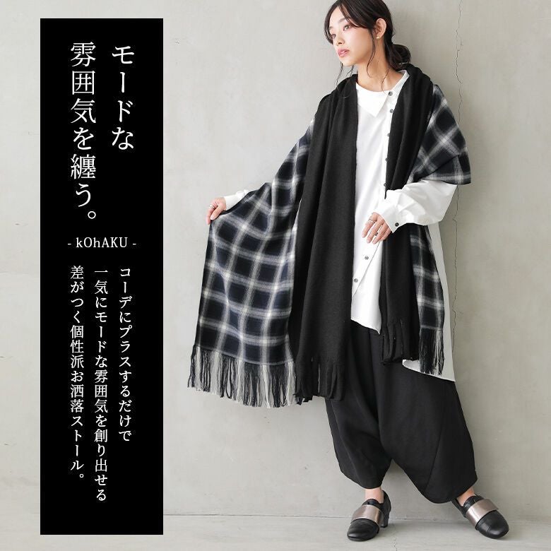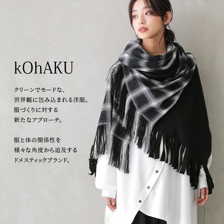 雰囲気を変えてくれる≪kOhAKU≫異素材チェックフリンジストールです。