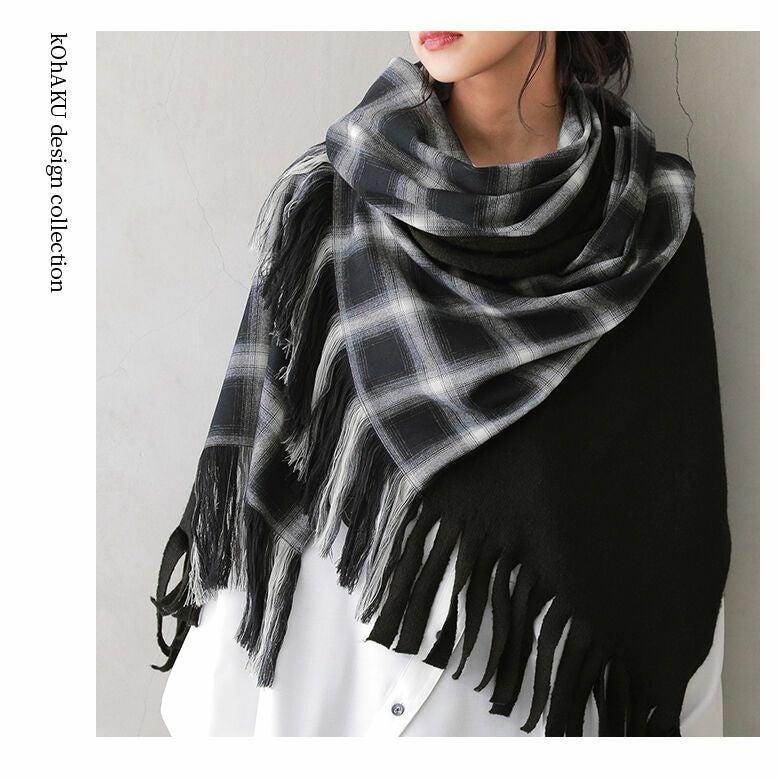 4. 『kOhAKU異素材チェックフリンジストール』【メール便不可】【20】