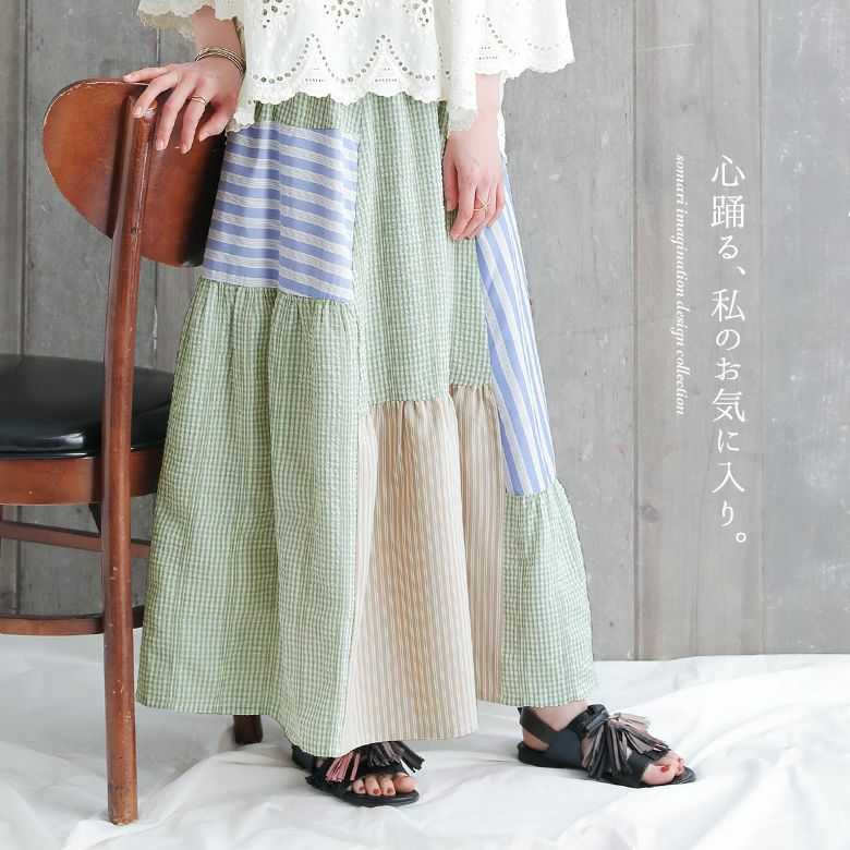 他と差がつく主役級アイテム≪somari imagination≫パッチワークフレアスカートです。