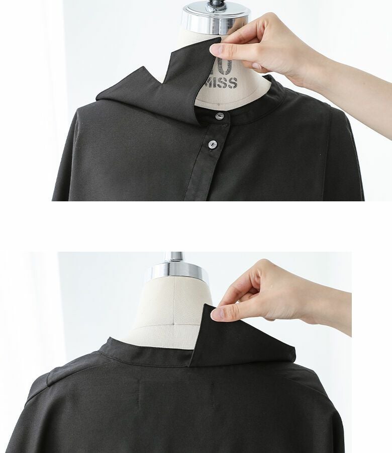 さらりとした肌触りで落ち感のあるシャツ生地を使用。程よい厚みでロングシーズン着られるのも嬉しいポイント。