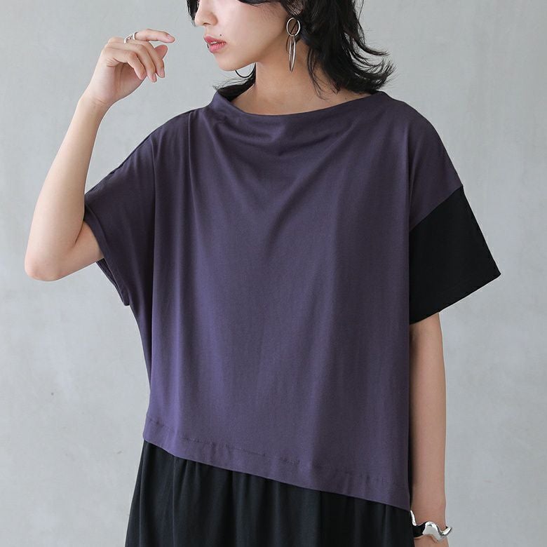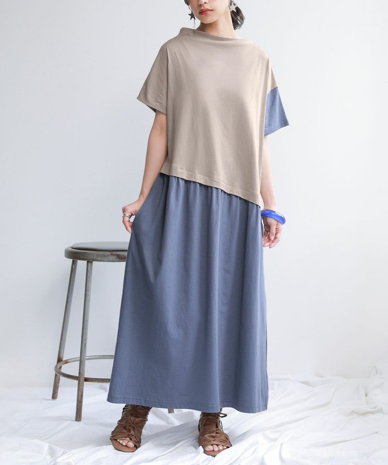 アシンメトリーのシルエットやスタンドネック、配色デザインがモードな世界観を創り上げるここだけのカットソーワンピース。