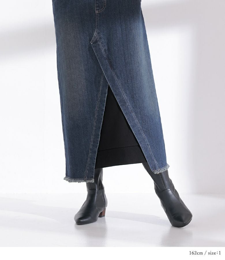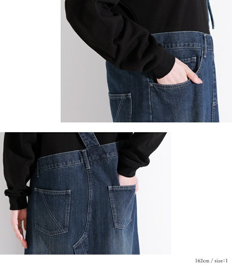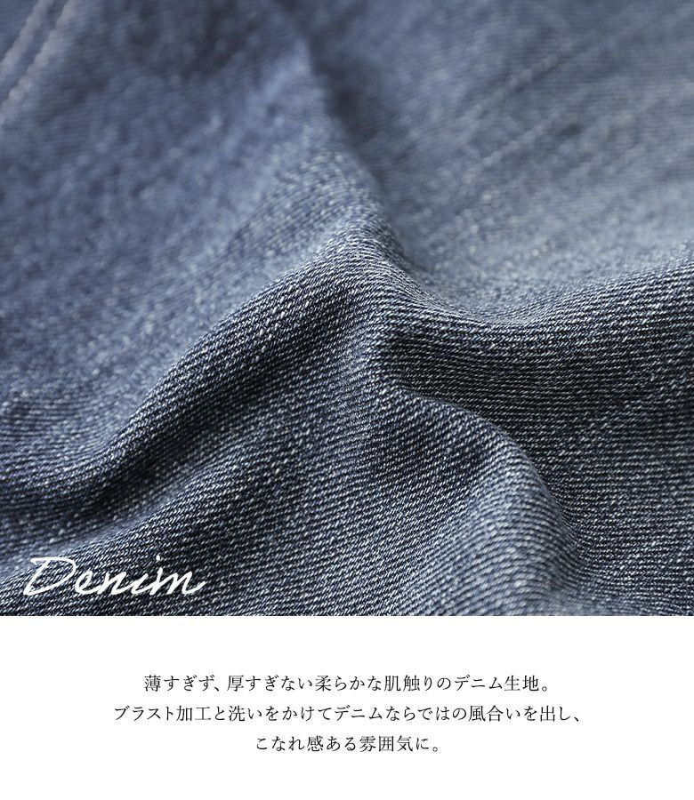 スカート部分は薄すぎず、厚すぎない柔らかな肌触りのデニム生地を使用。ブラスト加工と洗いをかけてデニムならではの風合いを出し、こなれ感のある雰囲気に。