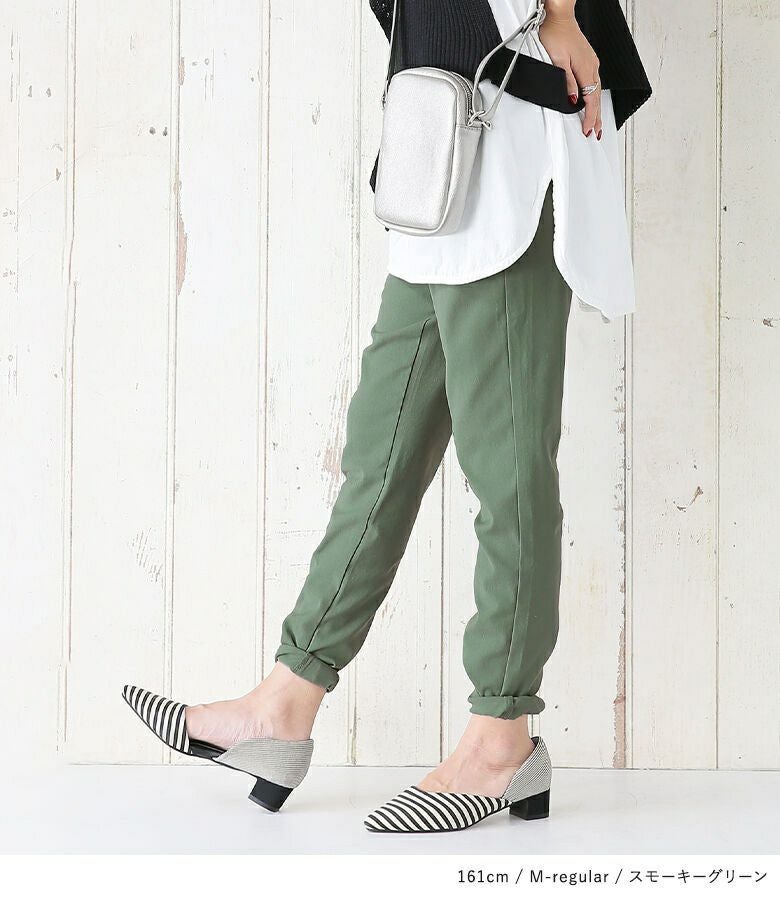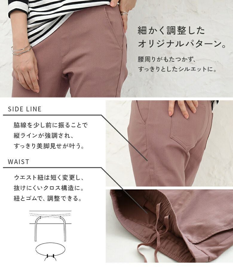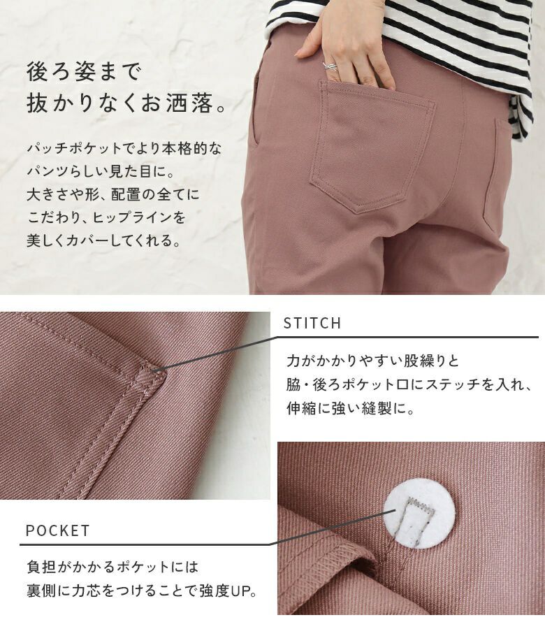 パッチポケットを施すことで、本格的なパンツらしい見た目とスタイルアップを実現。程よい厚みと充実のカラー展開で、季節を問わずどんなスタイルにも合わせやすいのがポイントです♪