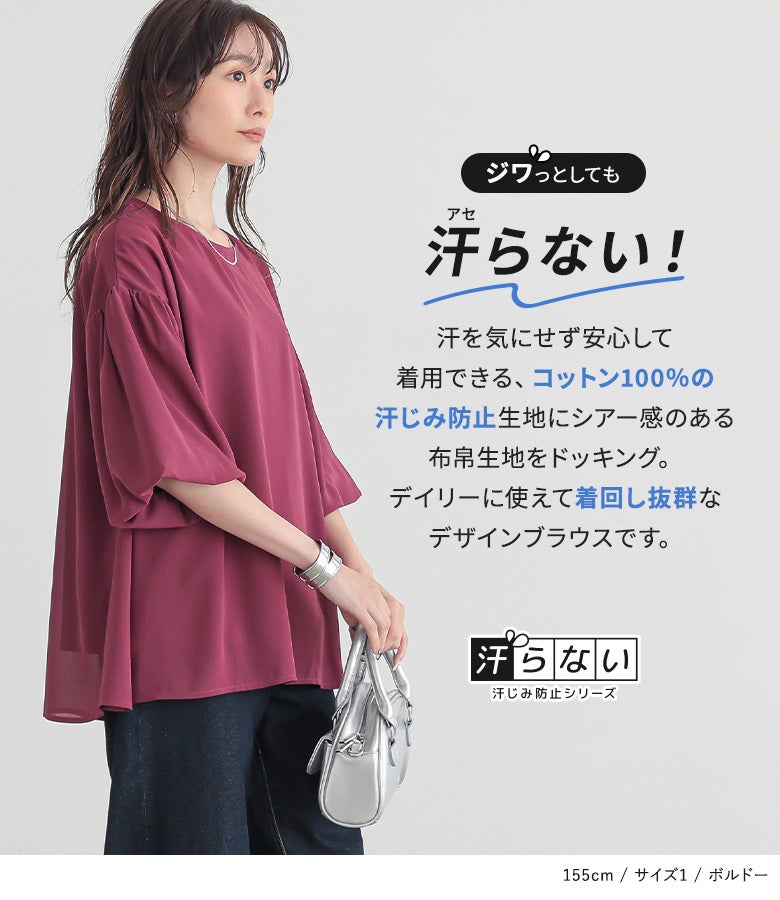 他の画像を見る 選べる2サイズ展開!汗じみ防止機能付き♪カットソー×シアー生地のレイヤードブラウス。 『n'OrLABELインナードッキングシアーブラウス』※メール便可※【10】 ¥ 3,960 税込 (0)