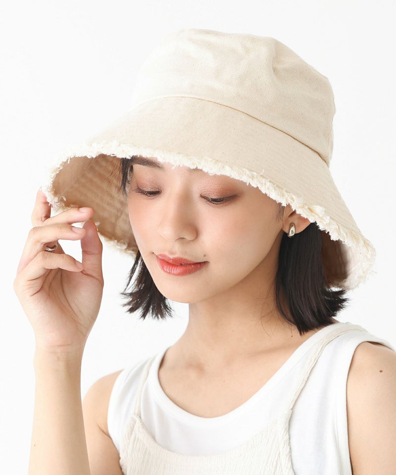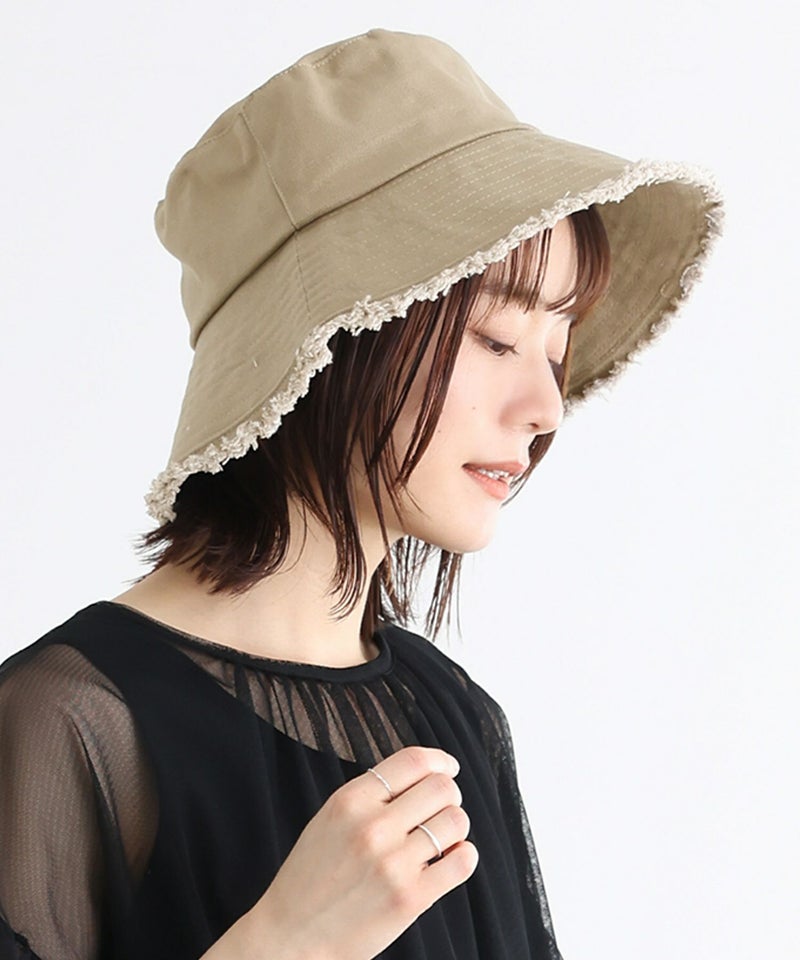 フリンジがポイントになるシンプルなバケットハット。暑い季節に嬉しい機能付きで、スタイリングのアクセントになるアイテムです。