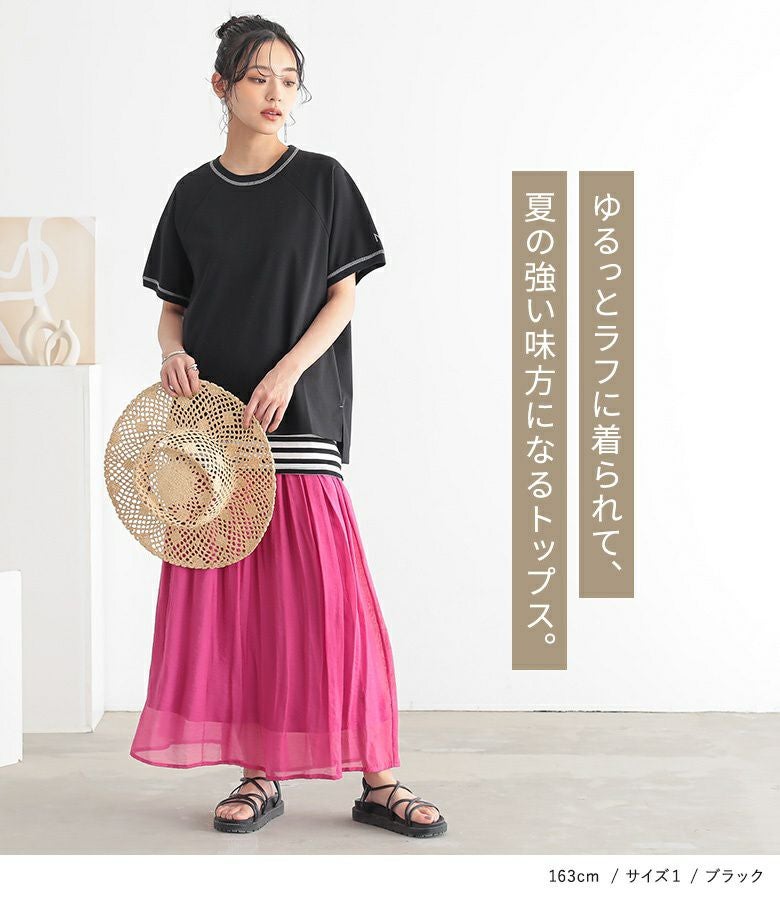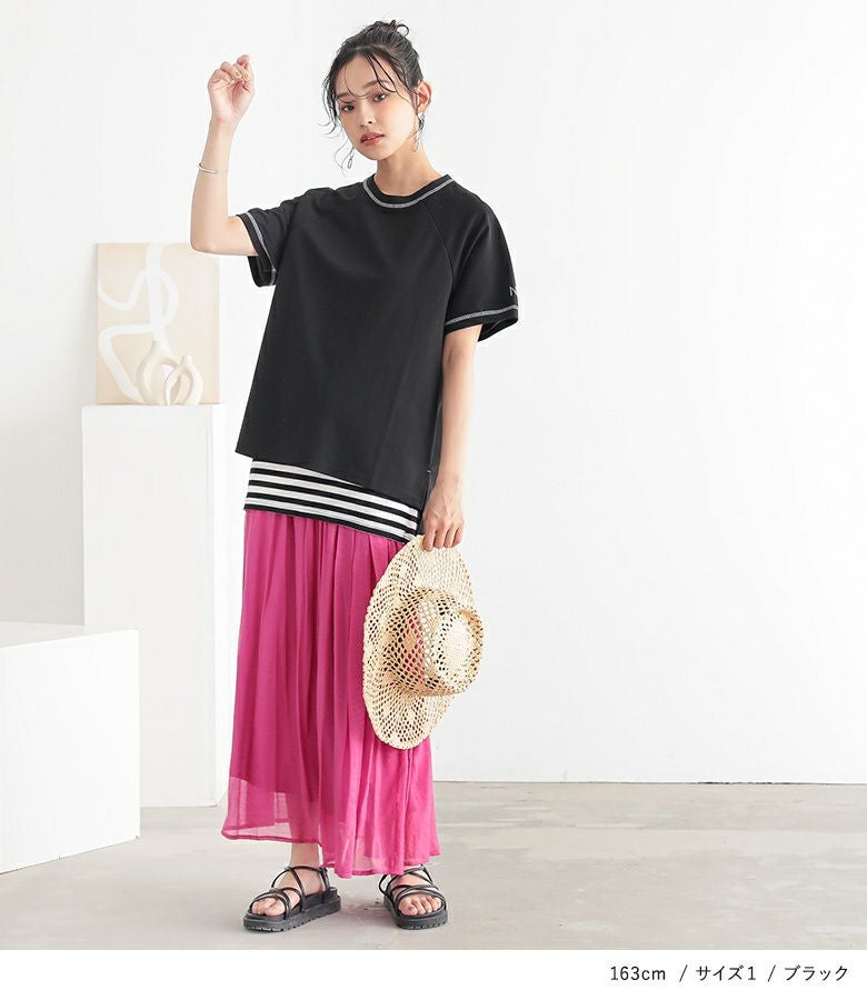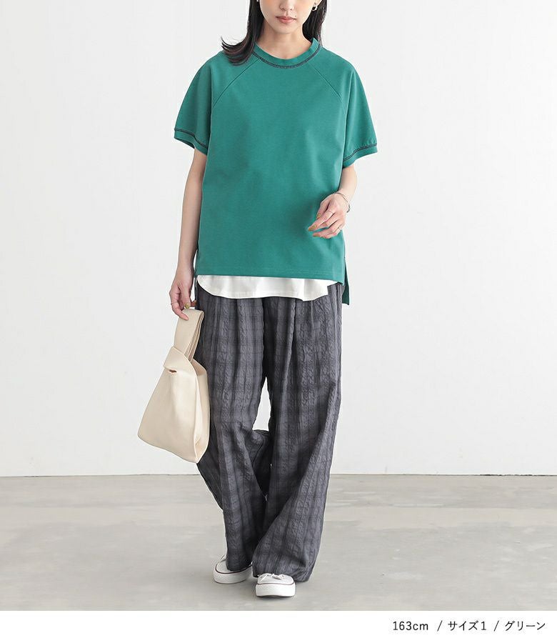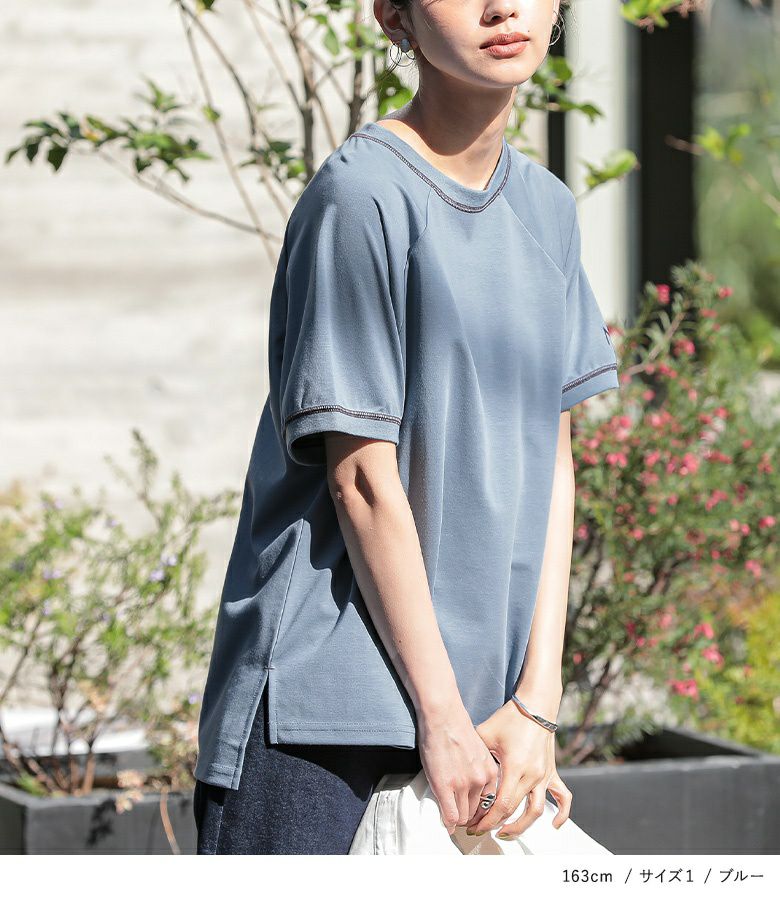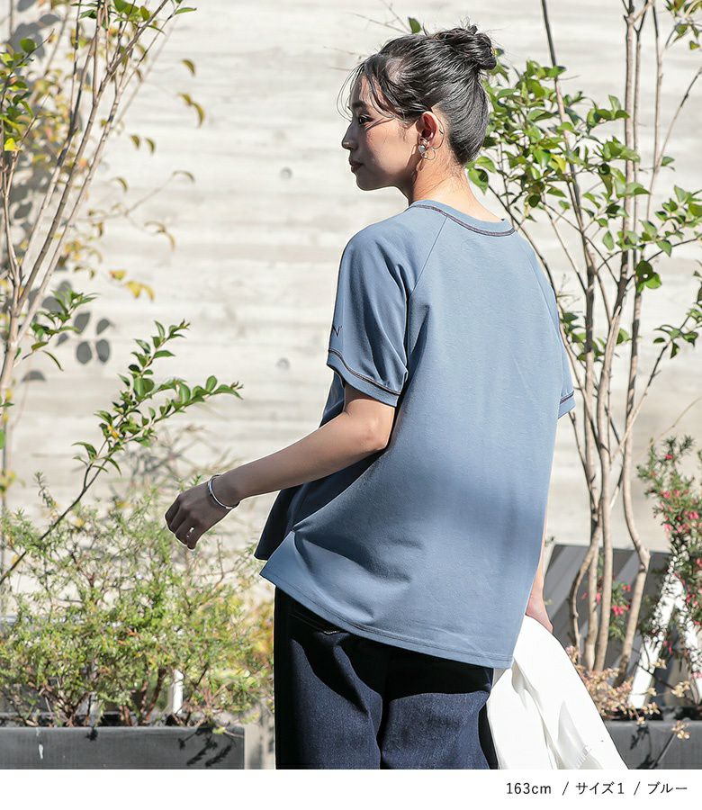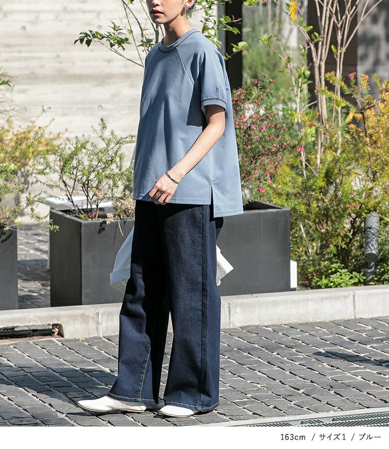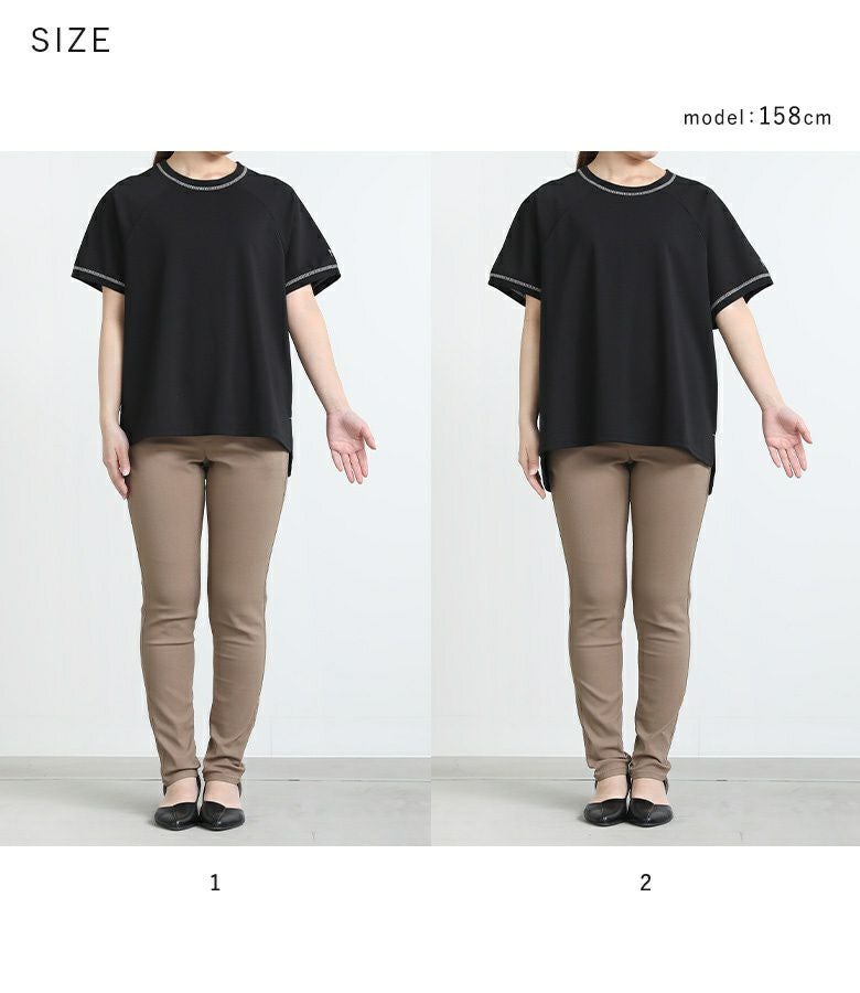 【普段着用】 Tops:M/L Bottoms: M/L | 【1】 袖丈:ひじ上7cm位 着丈:ヒップ真ん中位 腕周り:ややゆったり バスト:ややゆったり 全体:ややゆったり