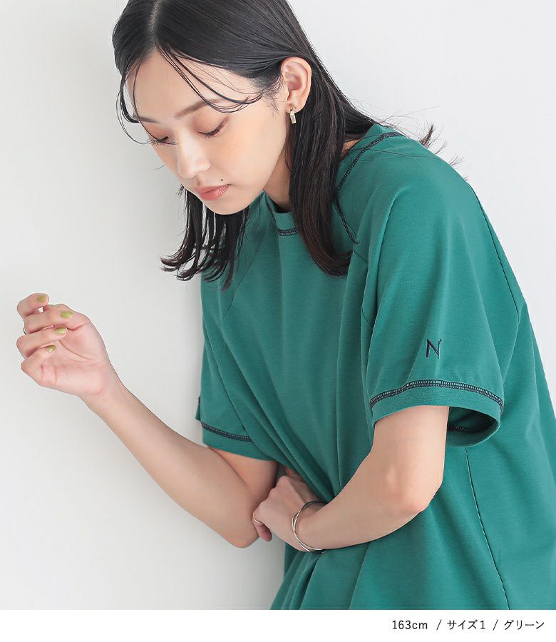 【普段着用】 Tops: M Bottoms: M | 【1】 袖丈:ひじ上7cm位 着丈:ヒップがすっぽり隠れる位 腕周り:ややゆったり バスト:ややゆったり 全体:ややゆったり