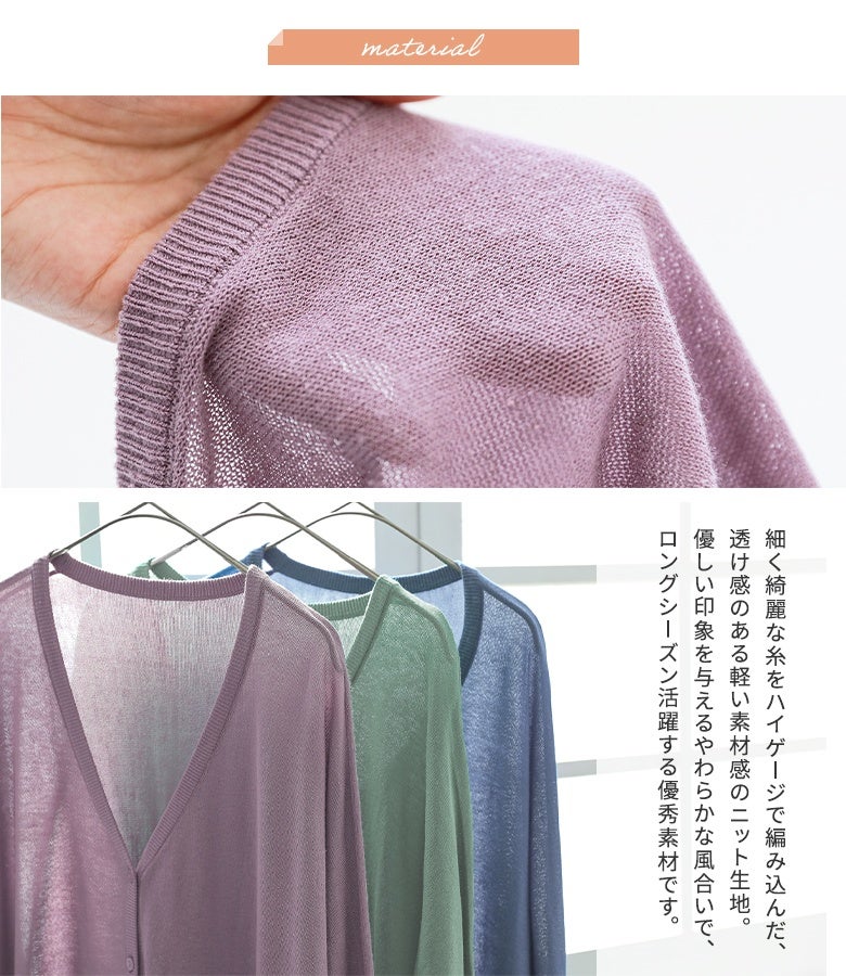 暑い季節も大活躍!UVカット加工を施した涼やかなニットカーディガン♪