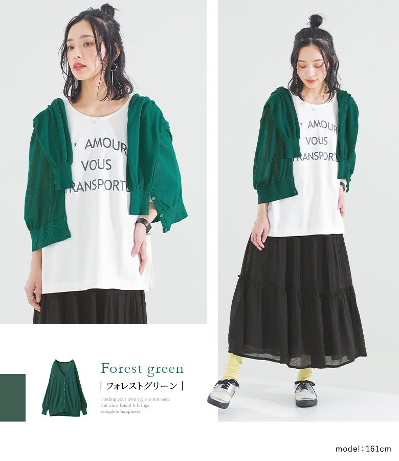 汗かきなので夏場は白黒のモノトーンしか着れないので、差し色でサフランとフォレストグリーンを購入。 フリーサイズにしては大柄な私にも大きいと感じますが、夏場には通気性があって良いです。 バッグに折りたたんで入れてもシワになりにくいので持ち歩きにも便利です。