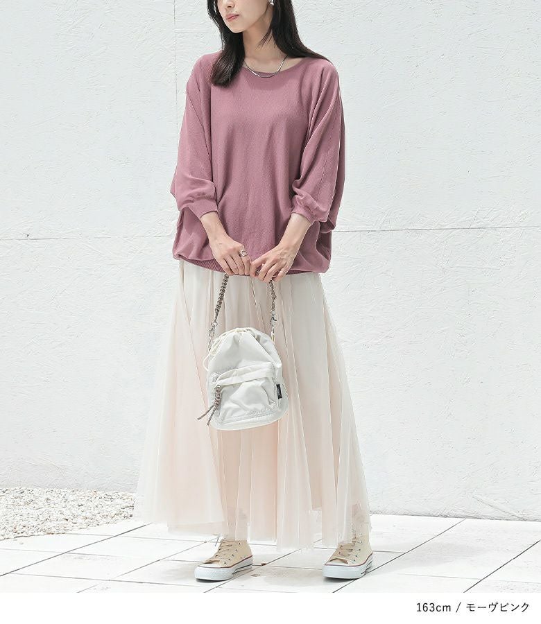 ※ニット製品は身体に自然と馴染む伸縮性が特徴となり多少サイズや風合いの個体差が生じる場合がございますがご了承のうえお買い求め下さいませ。