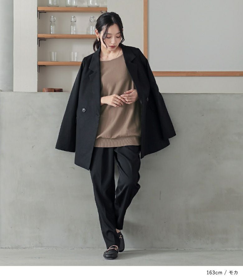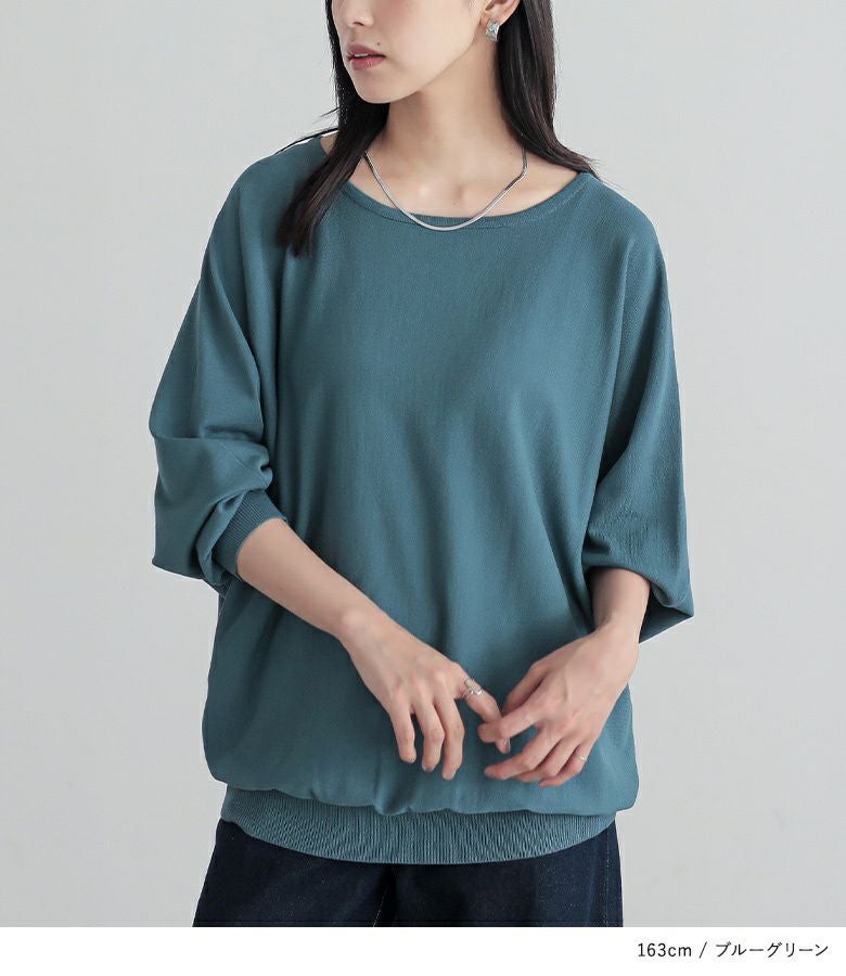 ほんのりパフ袖が女性らしさを、裾リブ上のギャザーがスタイルアップを叶えます。
