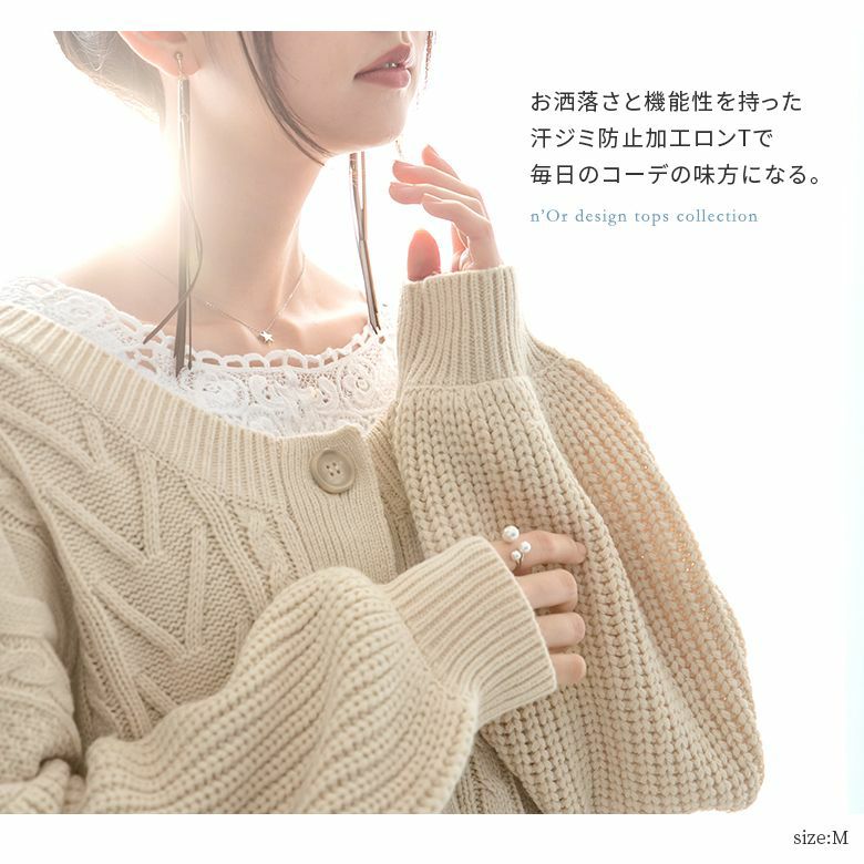毎日の着こなしの味方になる≪n'OrLABEL≫汗染み防止襟元レースロンTです。