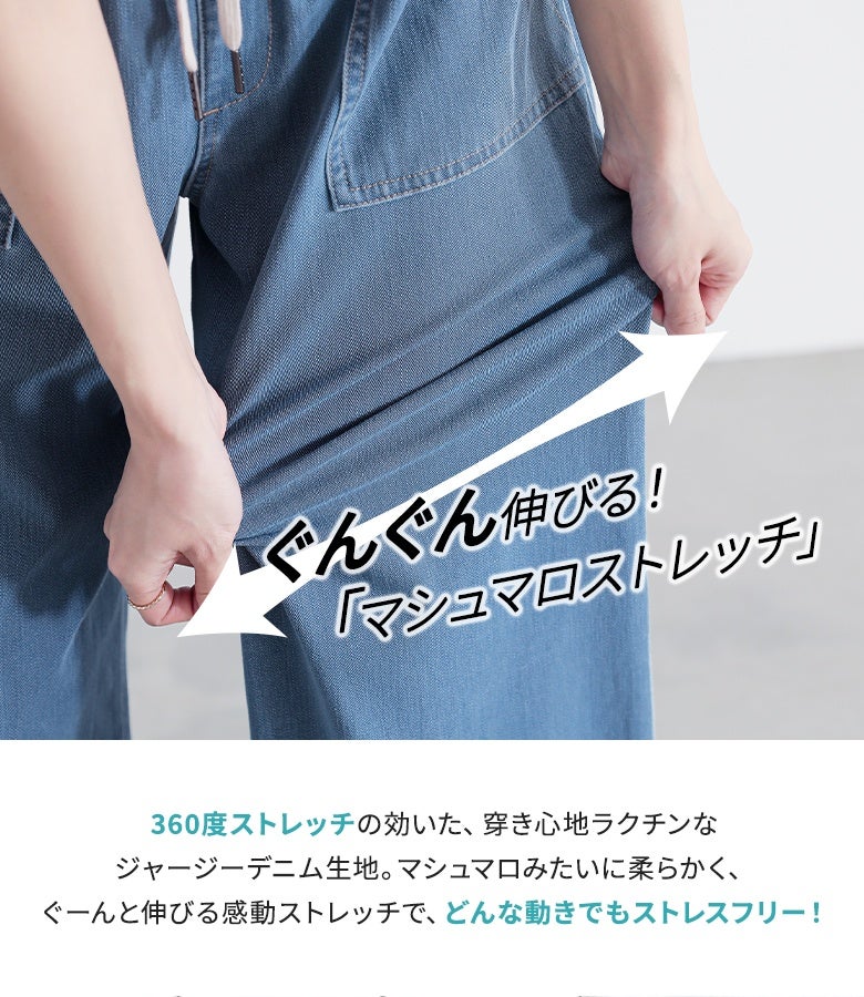 選べる2サイズ展開!冷感×ストレッチ!ラクなのにデニム見えするベイカーパンツ。