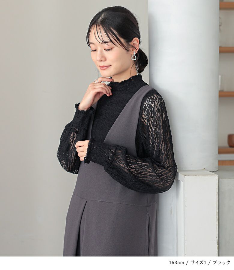 【普段着用】 Tops: LL Bottoms:LL | 【1】 袖丈:手の甲真ん中位 着丈:ヒップ真ん中位 腕周り:ややゆったり バスト:ジャスト 全体:ジャスト