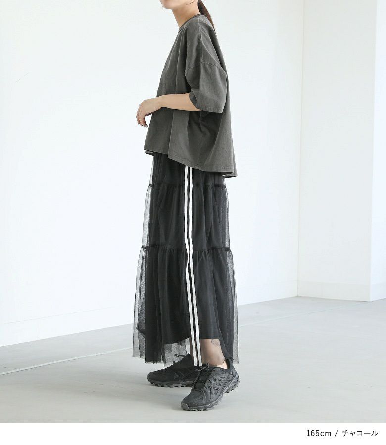 この丈のTシャツは、お尻が大きい私には抜群の相性でした この丈感のTシャツだったらスカートでも、お尻の辺りで生地がまごつくことなくスッキリ着れると思います