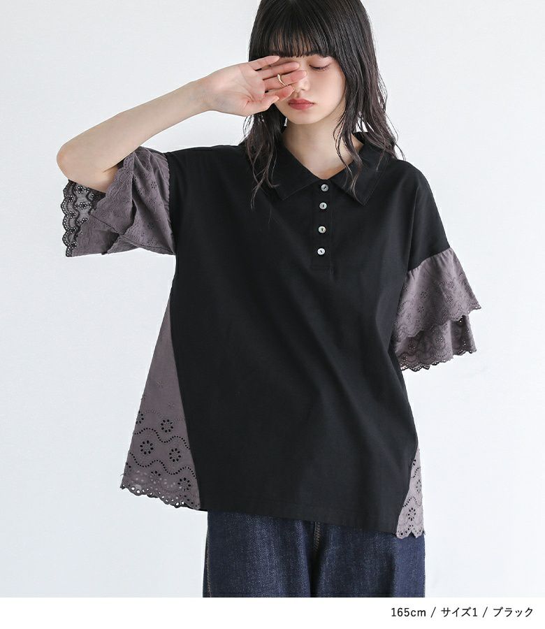 【普段着用】 Tops: S/M Bottoms: S/M | 【1】 袖丈:ちょうどひじ位 着丈:ヒップ下少し見える位 腕周り:ゆったり バスト:ゆったり 全体:ゆったり