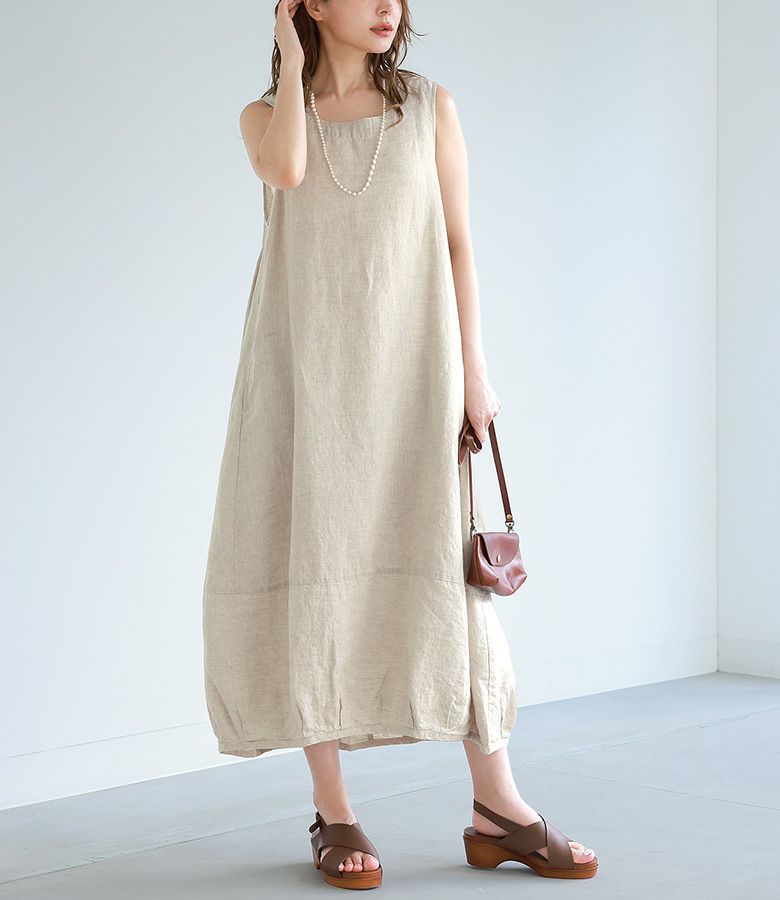 『40%OFFセール★OUKA SELECTリネンコクーンノースリワンピース』