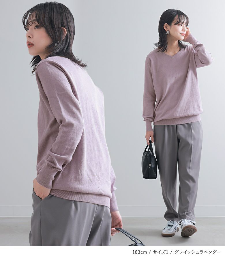 選べるM~5Lサイズ展開!ゆるやかVネックシンプル綿ニット