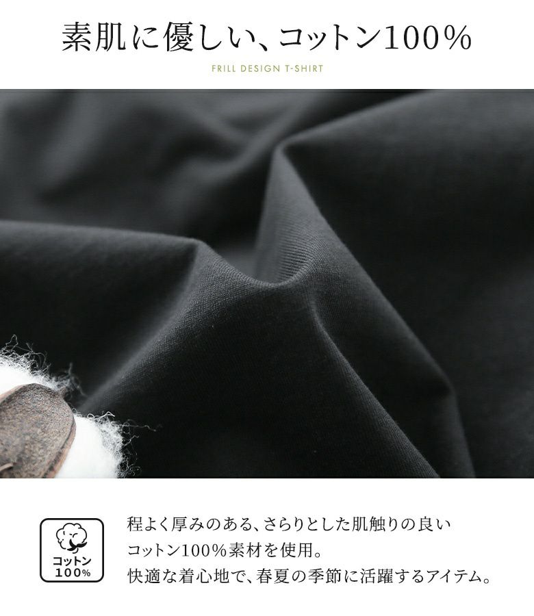 選べるM~3Lサイズ展開!贅沢なお洒落を楽しむフリルデザインTシャツ♪