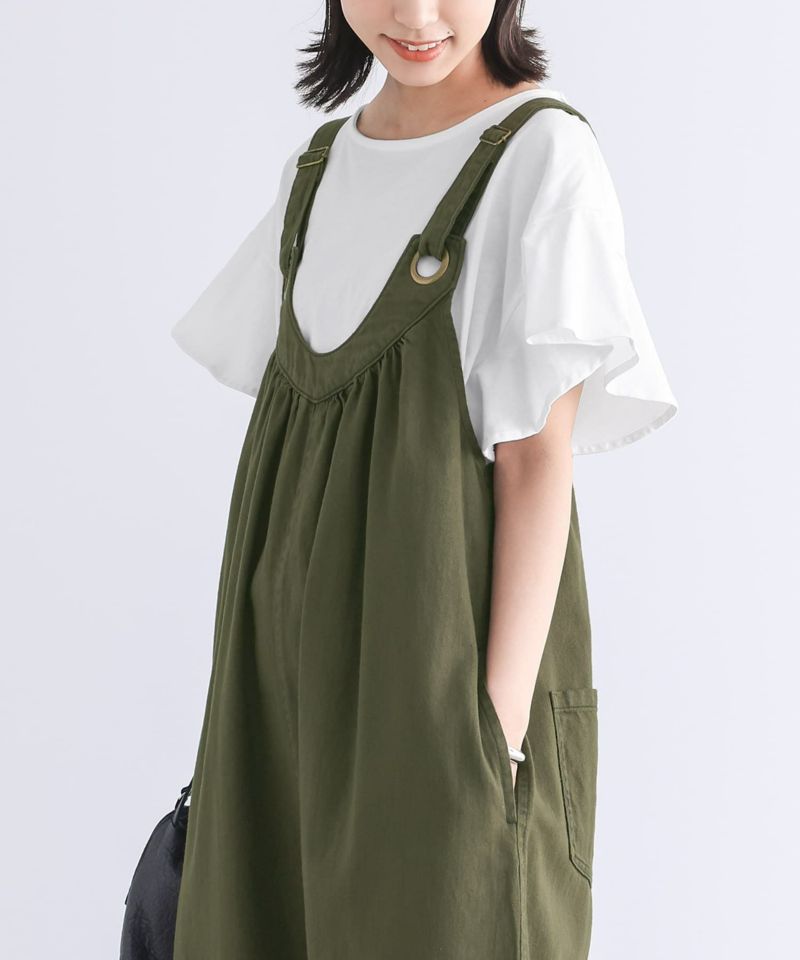 シンプルなデザインで着回しやすく、パンツやスカートにさらっと合わせるだけでコーディネートが完成します。サイドのフリルがアクセントになった、お洒落な着こなしに。サロペットなどのインに合わせても、さり気ないフリル使いが映えます。