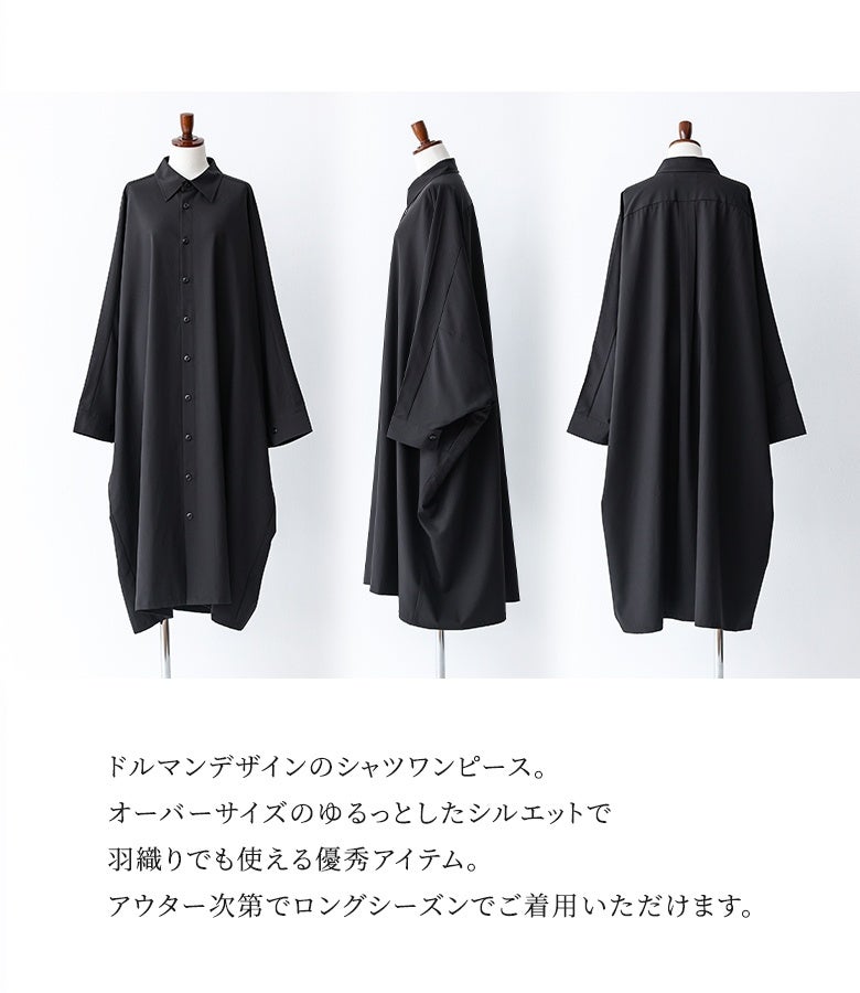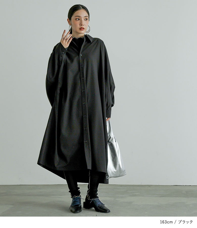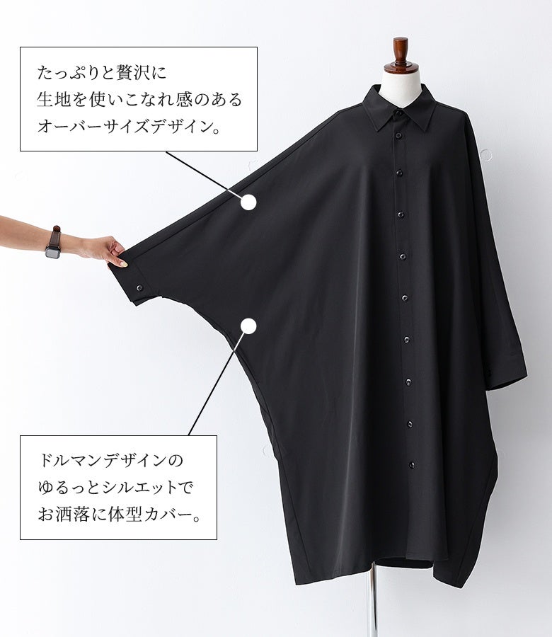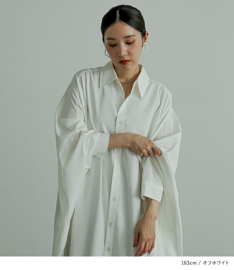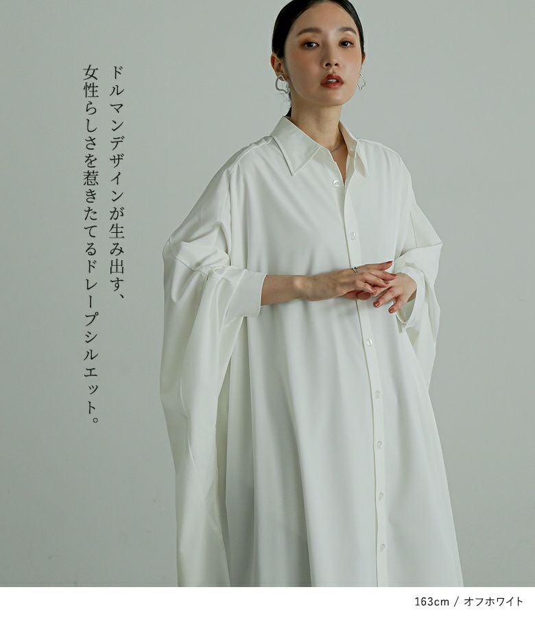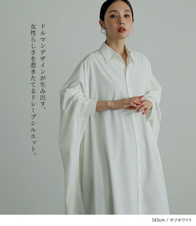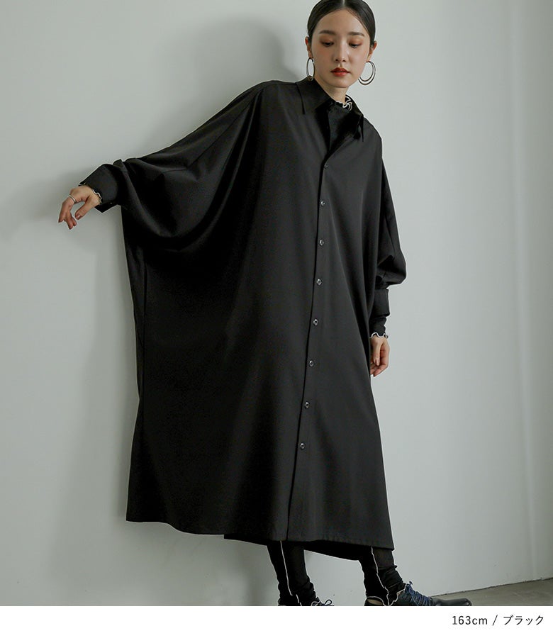 オーバーサイズでゆるっと着られる、ドルマンデザインのシャツワンピース。