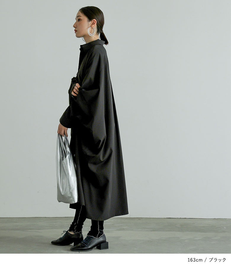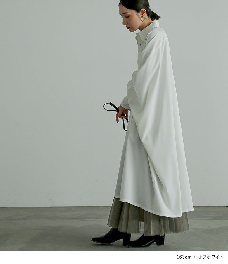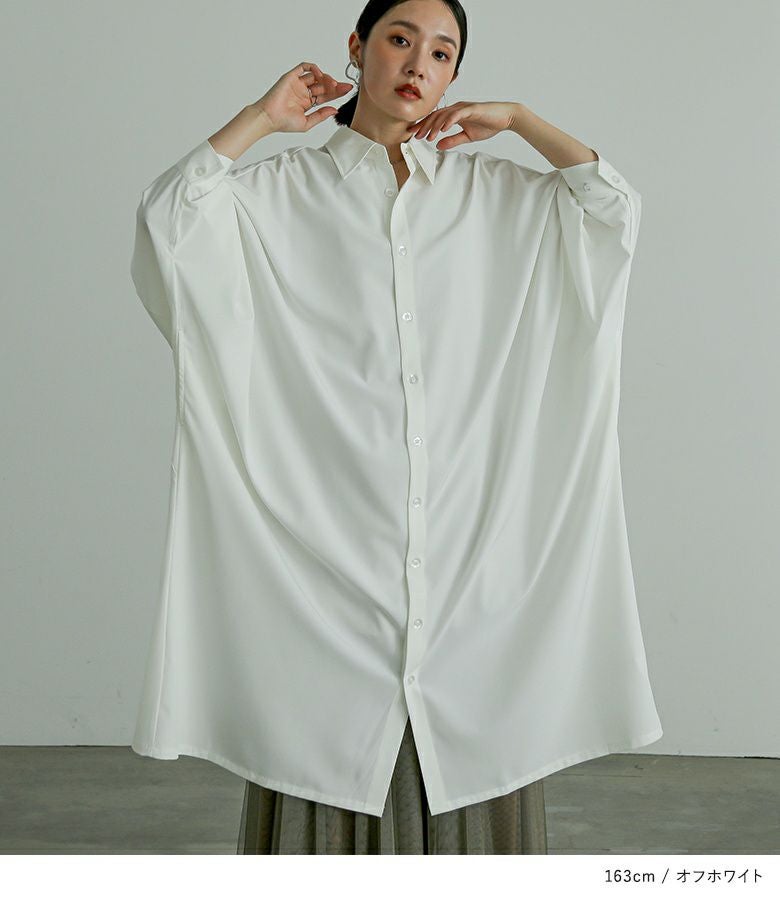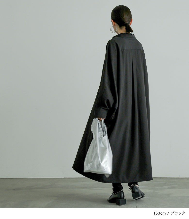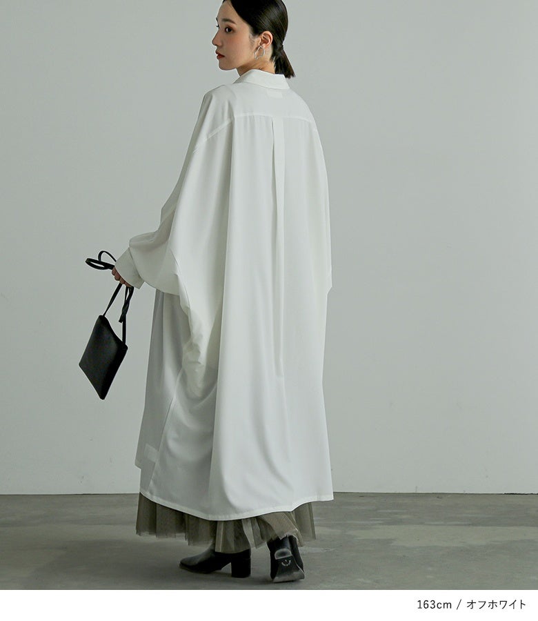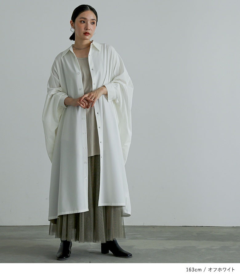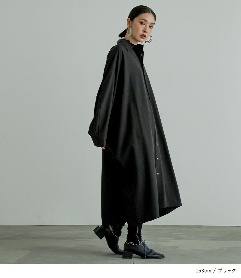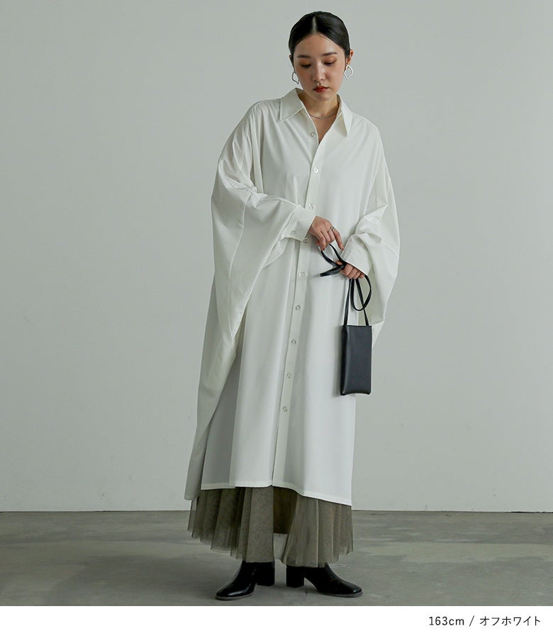 オーバーサイズでゆるっと着られる、ドルマンデザインのシャツワンピース。