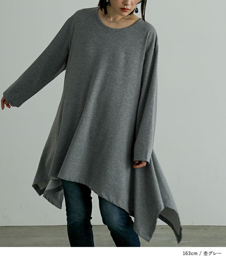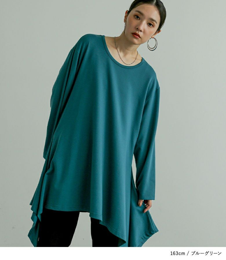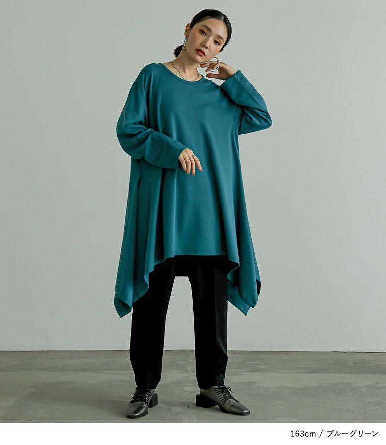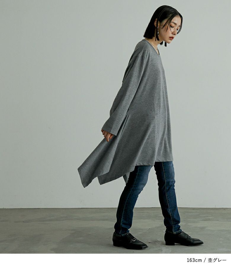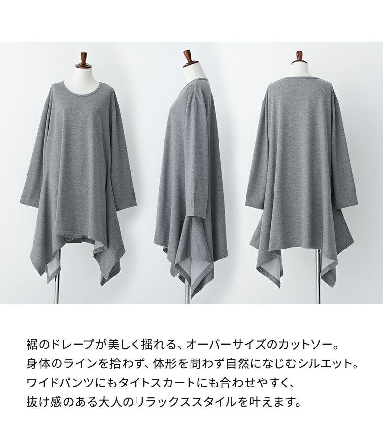裾のドレープが美しく揺れるオーバーサイズカットソー。