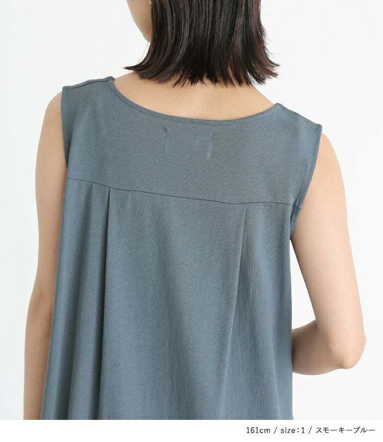 楽ちんですが、胸周りがジャストなサイズ感なので、若干下着のラインを拾いました。胸元の開きや見え方はスッキリと綺麗でした。