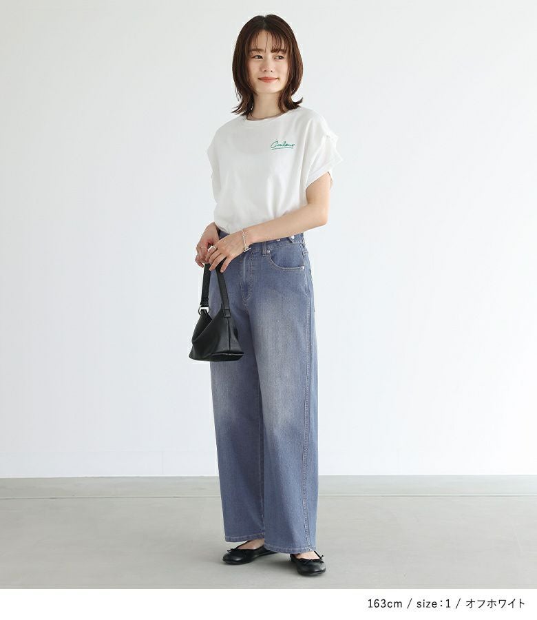 ワイドパンツやデニムなどに合わせて、カジュアルな着こなしをお楽しみいただけます。程良いサイズ感で、一枚でもサロペットなどにも合わせやすい一枚です。