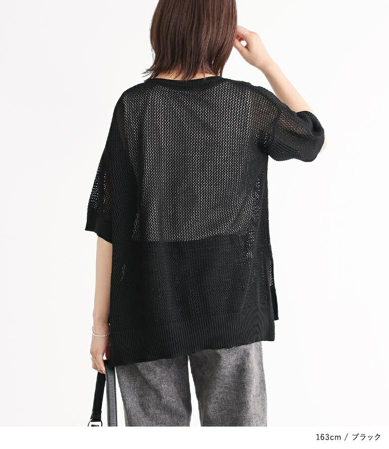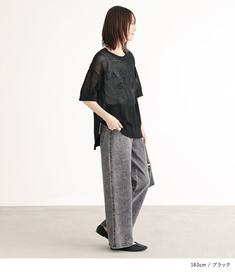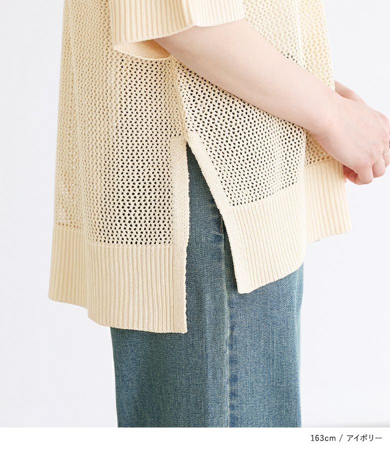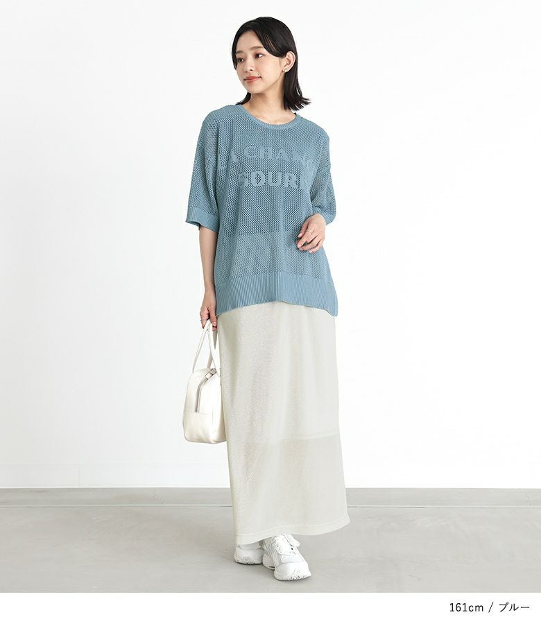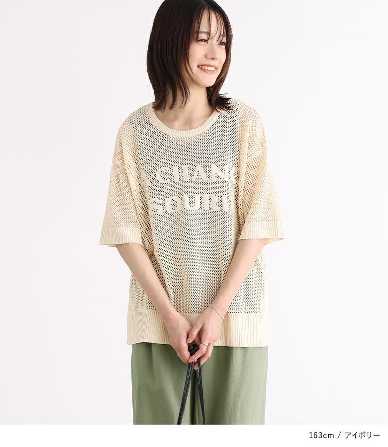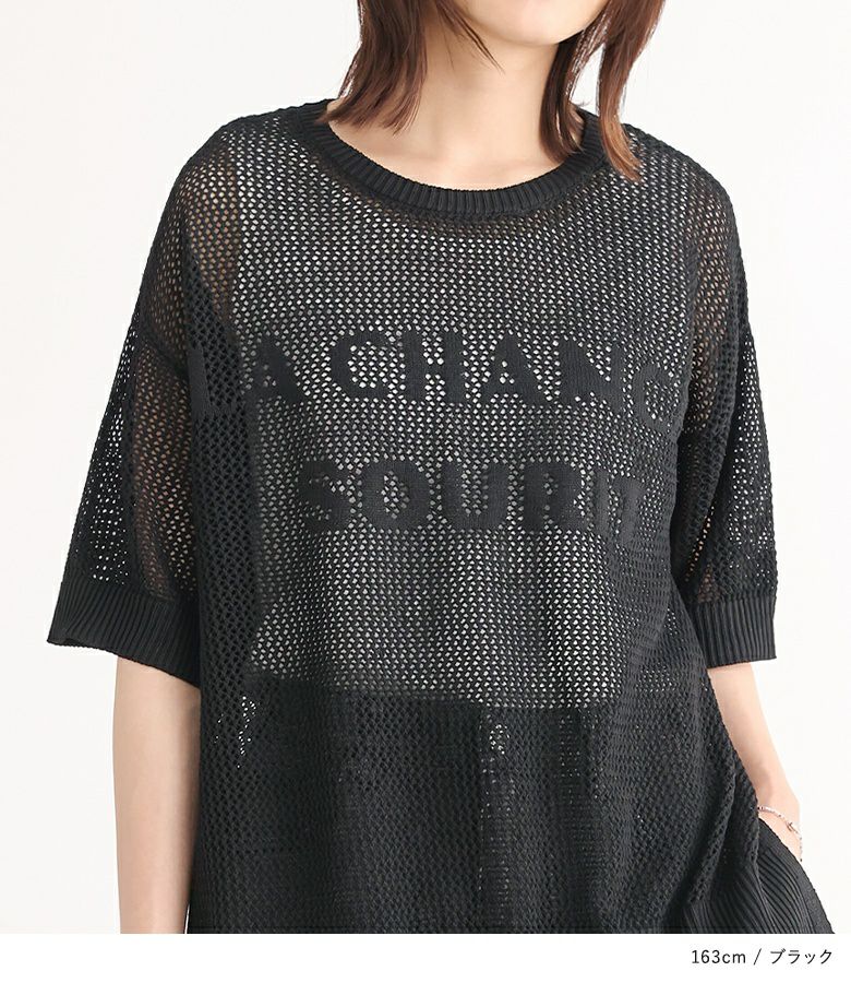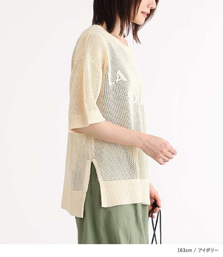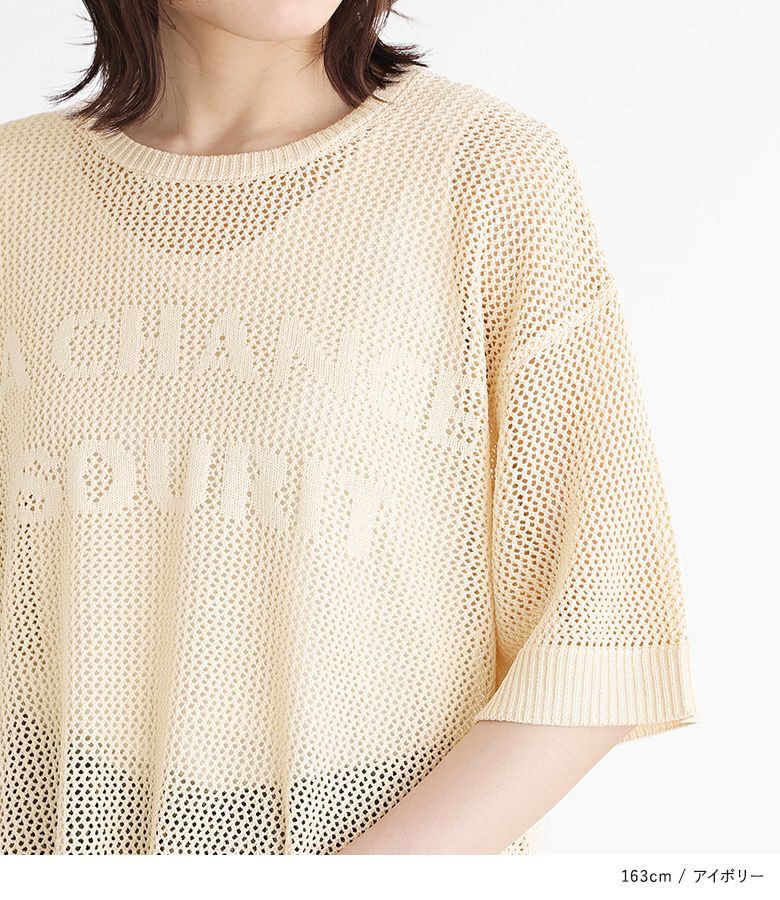 【40%OFF】大きめのロゴがポイント!レイヤードを楽しめるメッシュサマーニット。